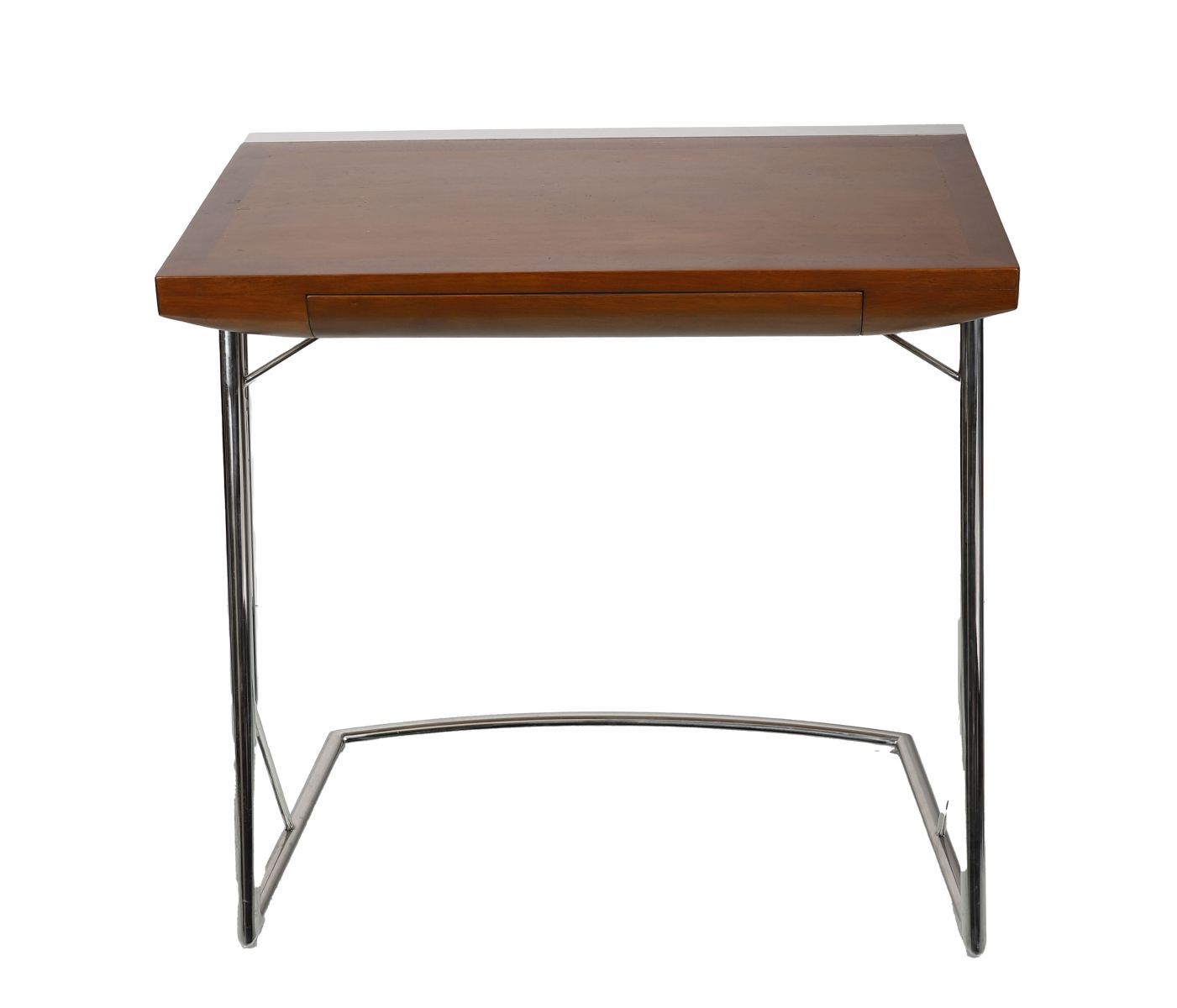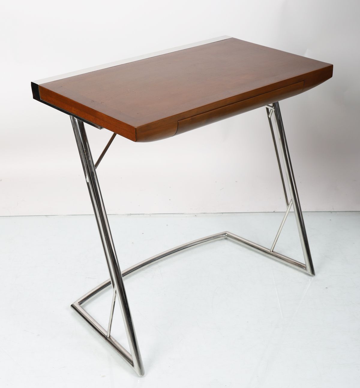 Lot 244 DESIGNER POLISHED CHROME AND FRUITWOOD WRITING TABLE