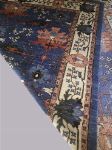Blue ground with all-over foliate and floral decoration enclosed by an ivory border.