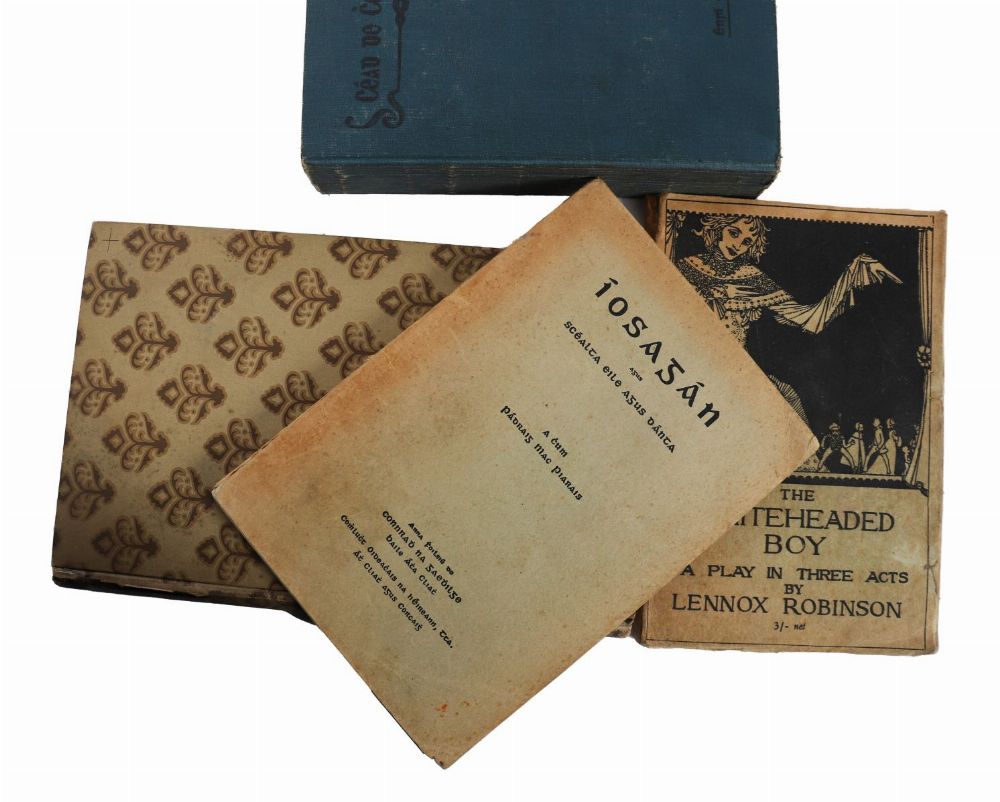 Pádraig Pearse (Pádrais Mac Piarais), Íosagán, first edition, with 12 woodcuts; together with Lennox Robinson, The Whiteheaded Boy, illustrated by Harry Clarke.