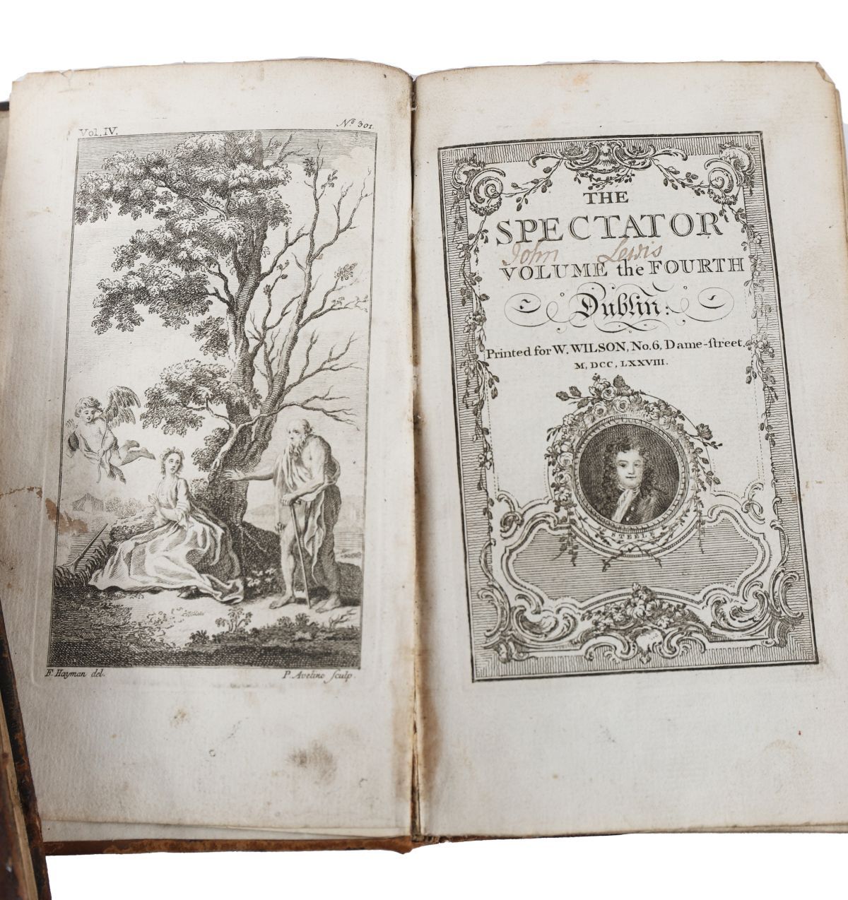 Lot 1022 DUBLIN PRINTINGS: THE SPECTATOR (VOL. I–IV, 1778) — WITH THE ENGLISH REGISTRY (1781)