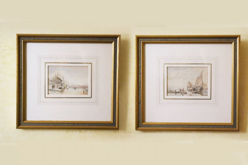 Pair of miniature marine scapes. Each a watercolour.