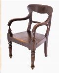 Early 19th-century ash kitchen armchair of William IV period, with shaped splat and solid seat. Vernacular form.