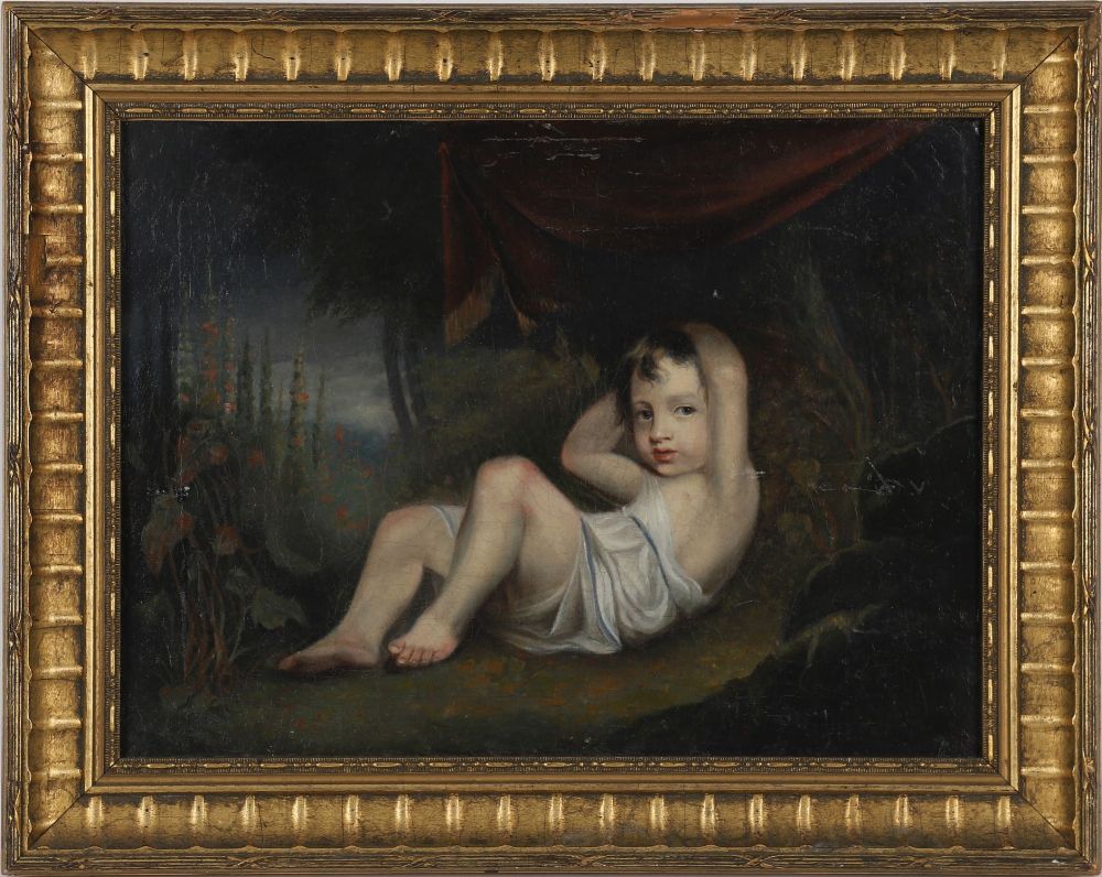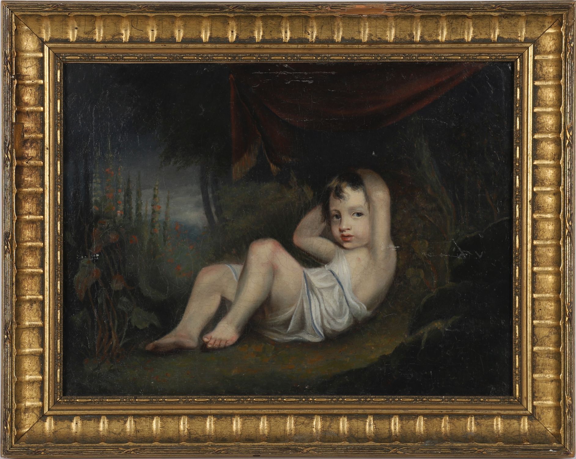 Resting Child in a Landscape (1810). Oil on Canvas. Unsigned. Framed.