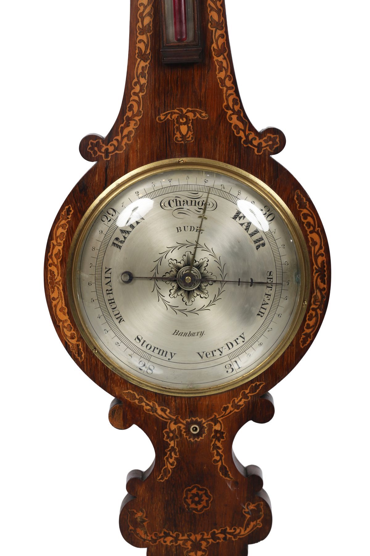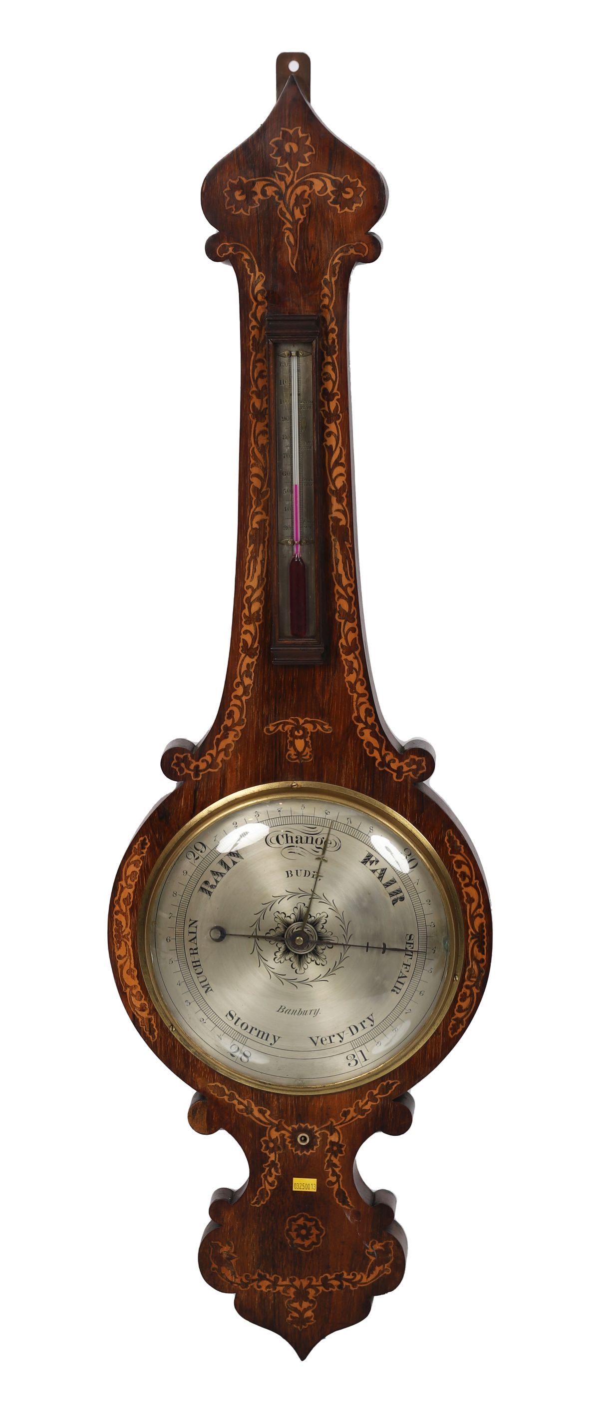 Lot 1437 EARLY 19TH-CENTURY ROSEWOOD AND MARQUETRY BANJO-SHAPED BAROMETER