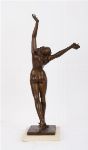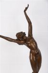 A finely cast bronze sculpture depicting a nude female figure poised in a graceful, expressive stance with arms raised and head turned upward, balanced elegantly on one foot over a square plinth base. Signed C. Betta to the base.