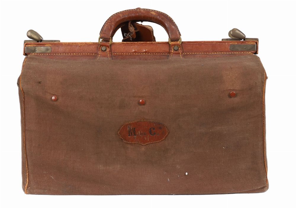 Lot 62 EARLY 20TH-CENTURY CANVAS AND LEATHER VALISE