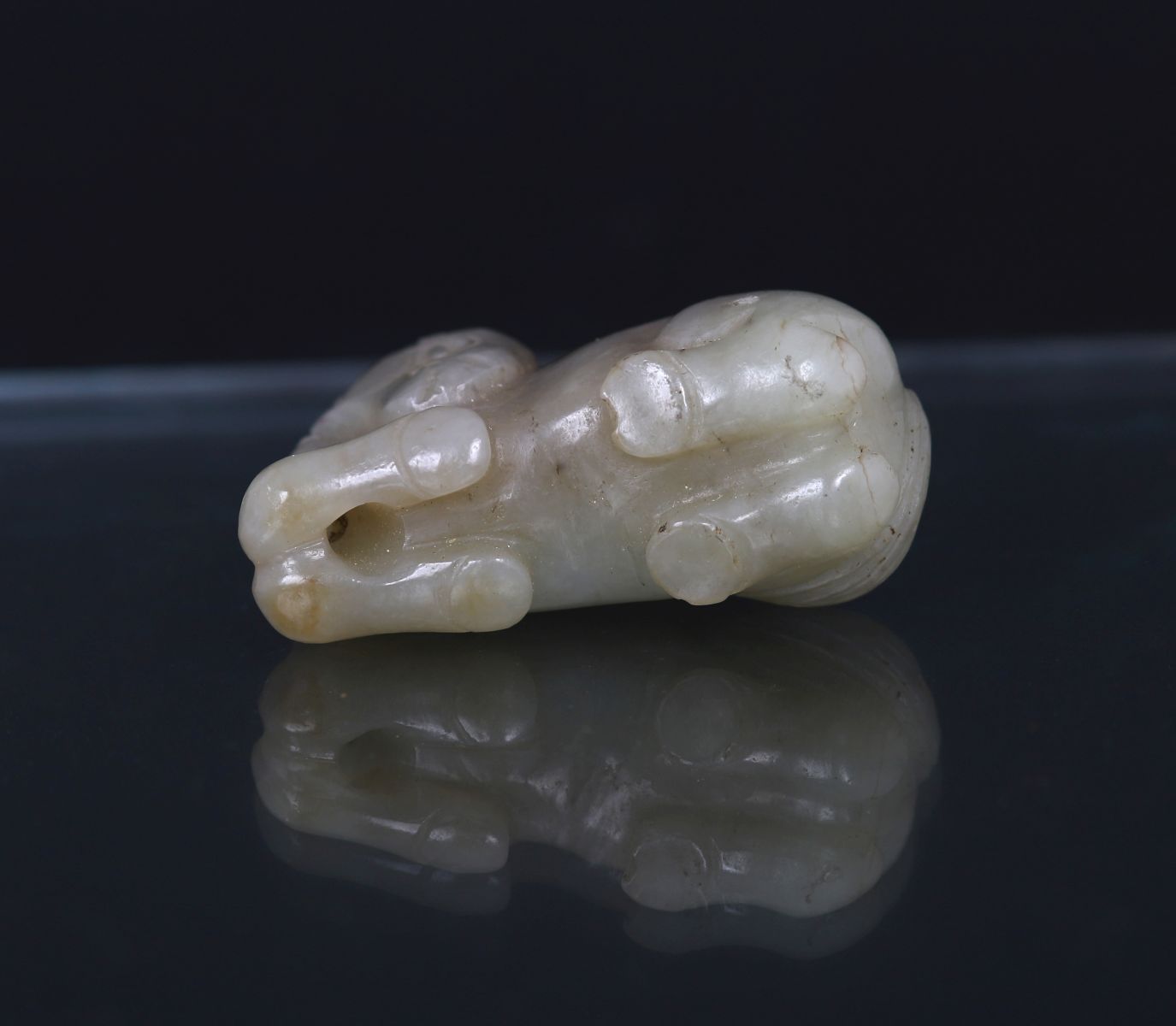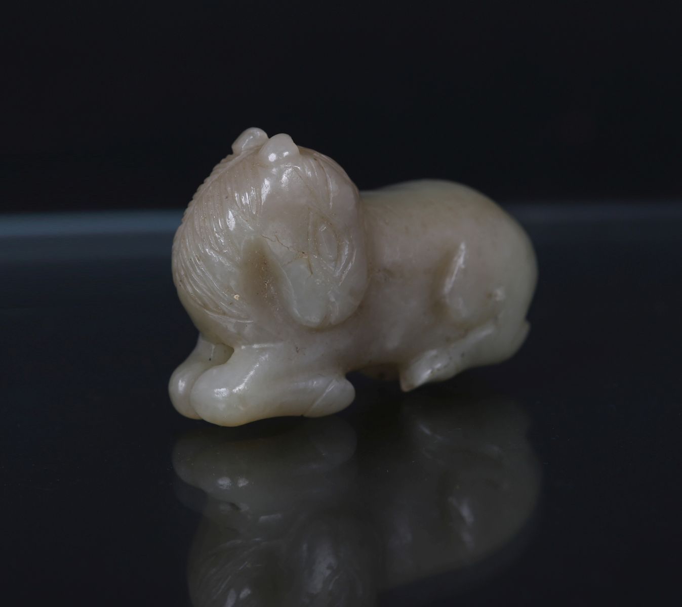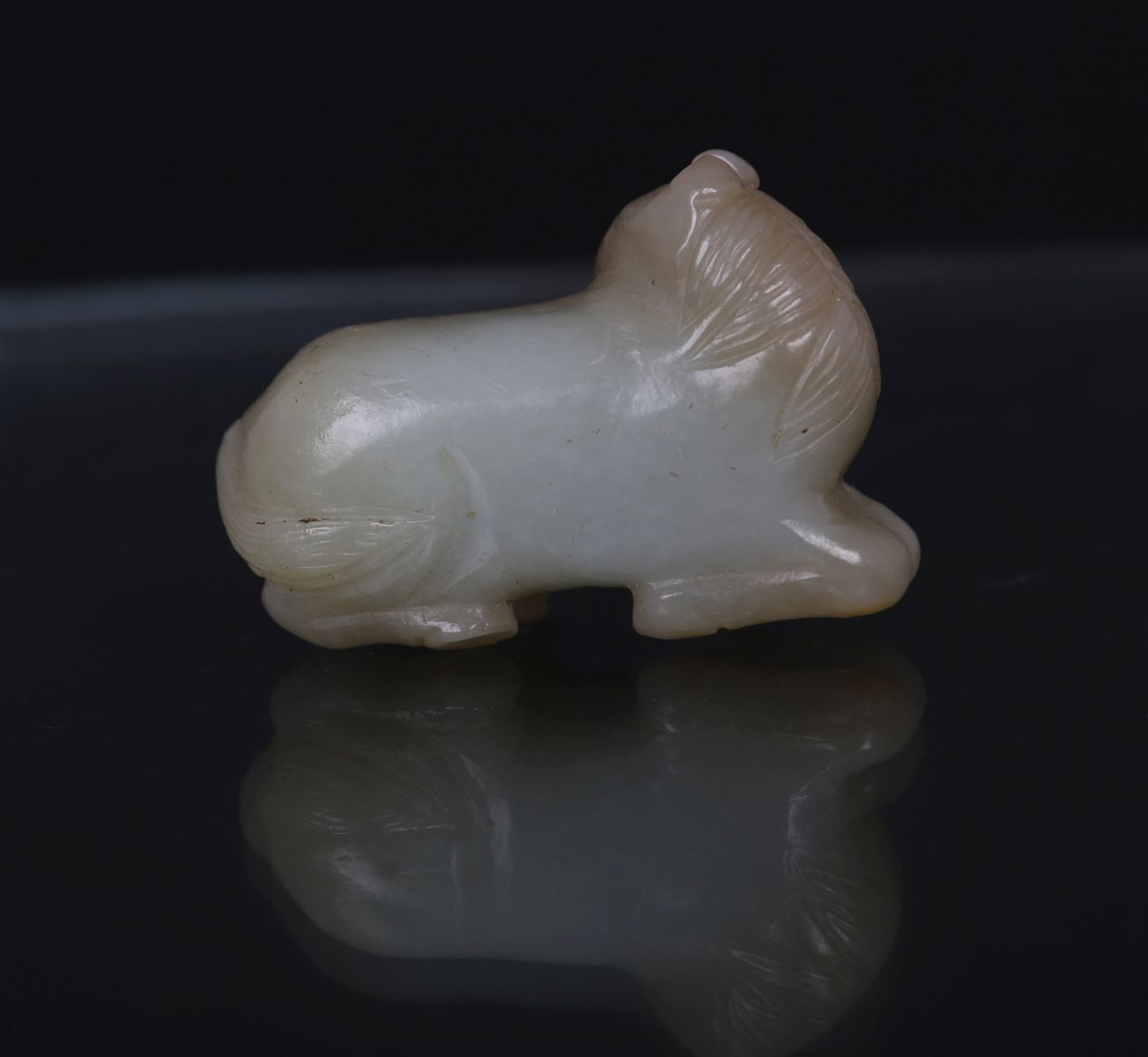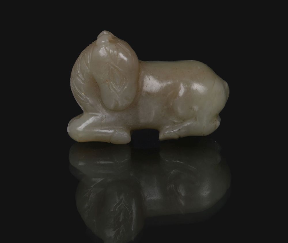 Lot 155 EARLY CHINESE CELADON JADE RECUMBENT HORSE