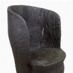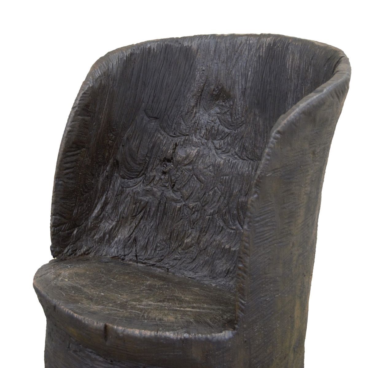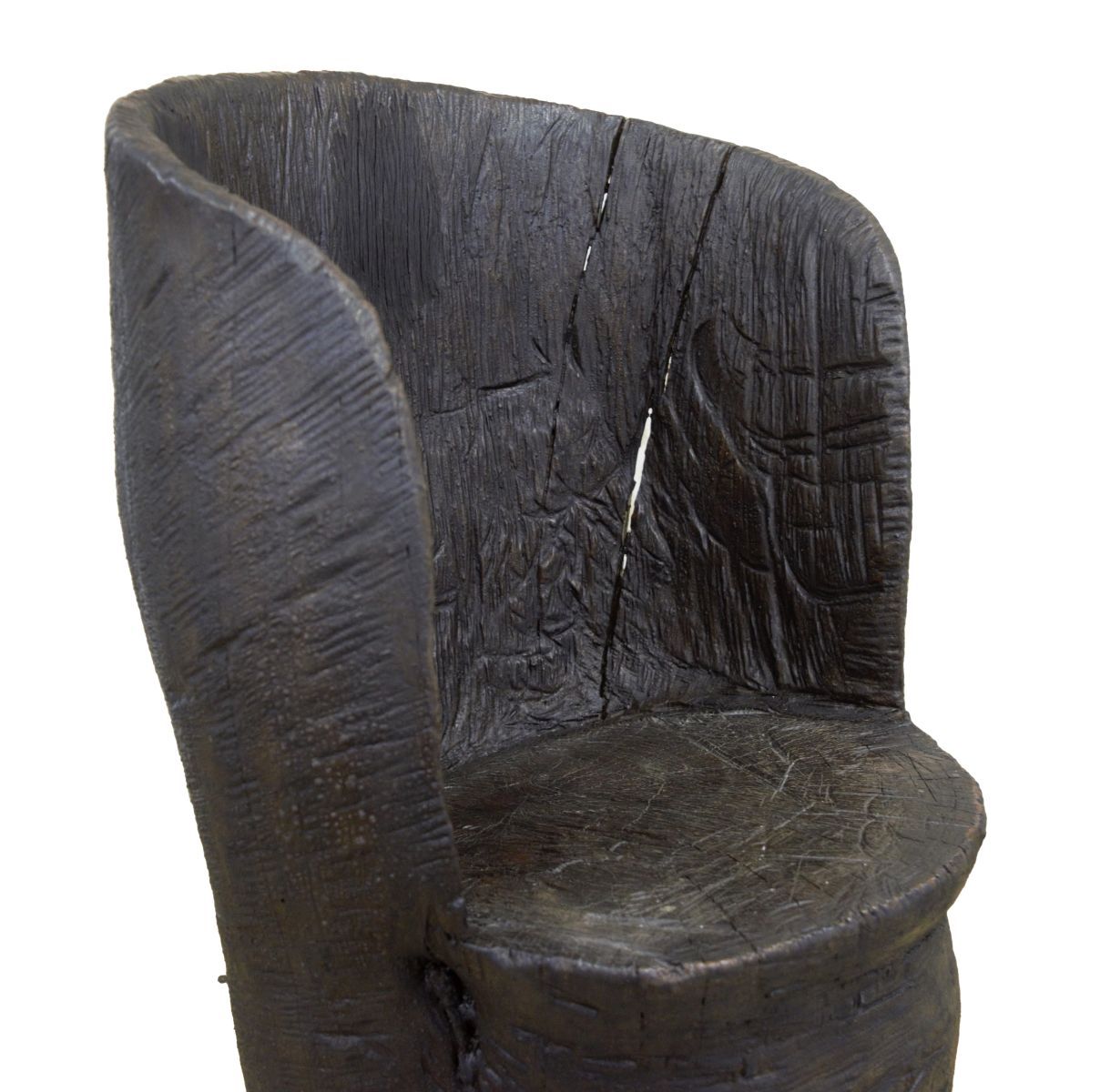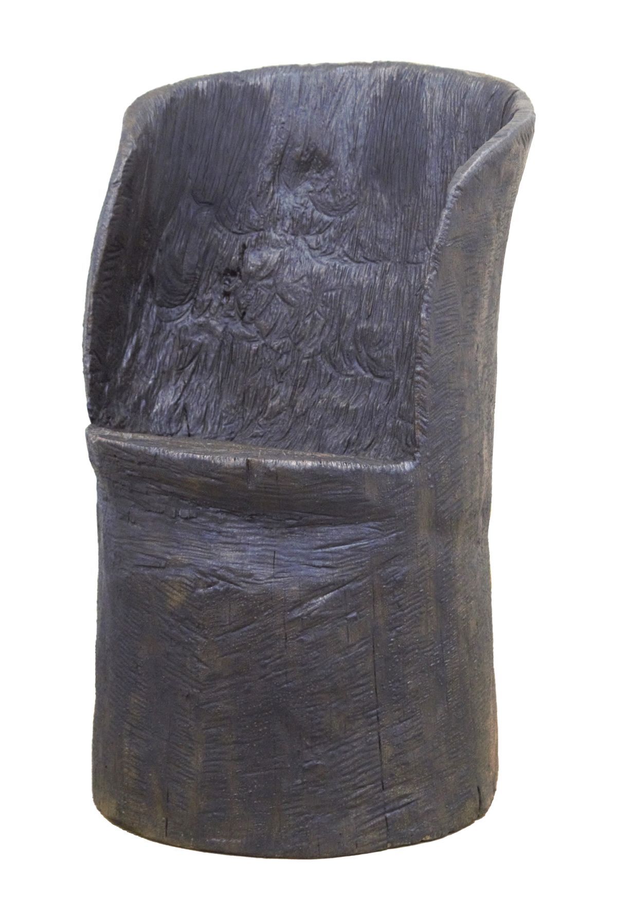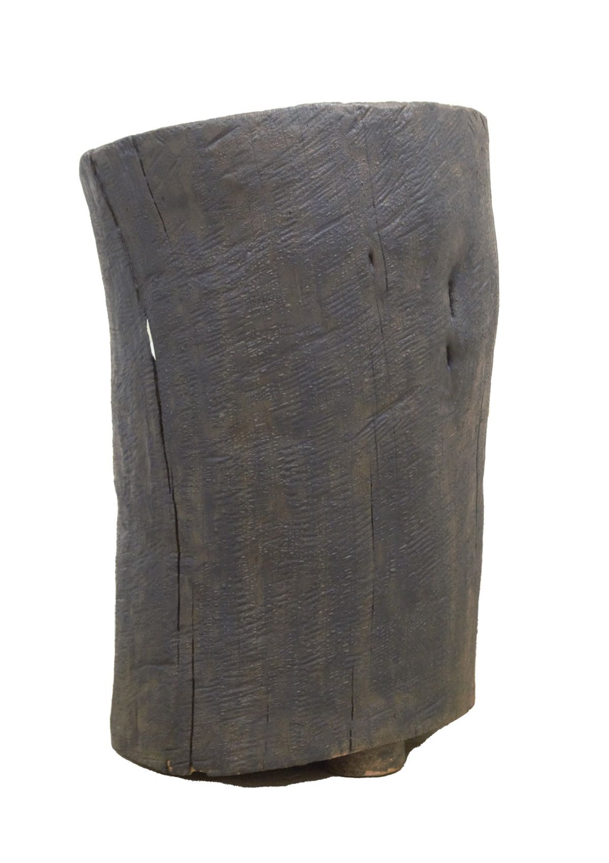 formed from a hollowed log, with smoothed interior; possibly used in a rustic setting as a stool or child's seat.