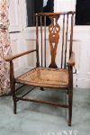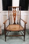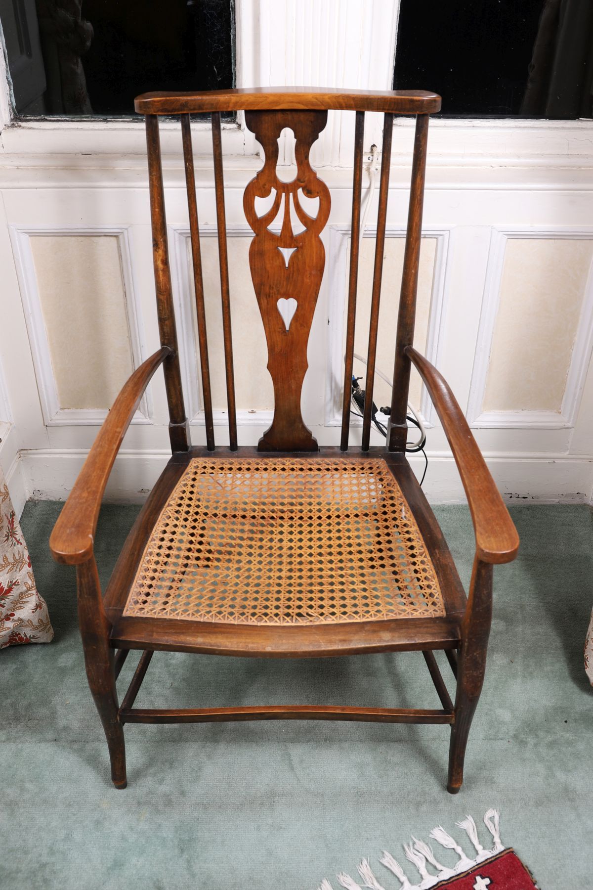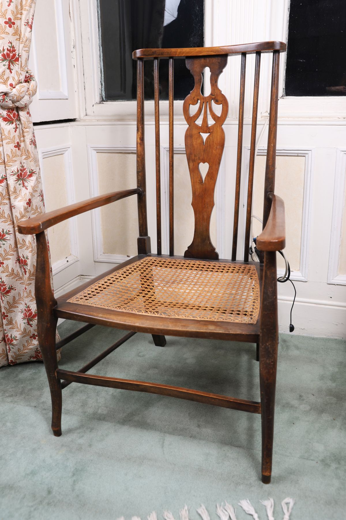 Lot 693 EDWARDIAN BEECH RAIL-BACKED ELBOW CHAIR