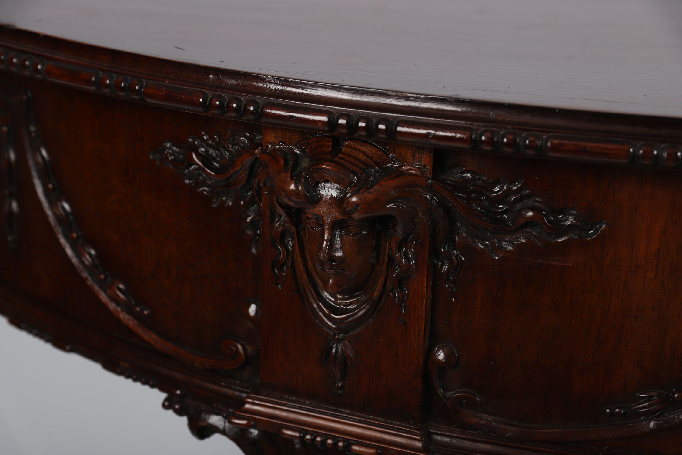 Lot 616 EDWARDIAN MAHOGANY ADAM STYLE SIDE TABLE WITH MASK DECORATION