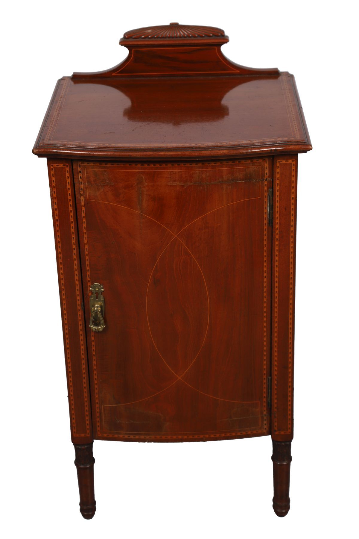 Lot 279 EDWARDIAN MAHOGANY AND CHECKERED-INLAID BEDSIDE PEDESTAL
