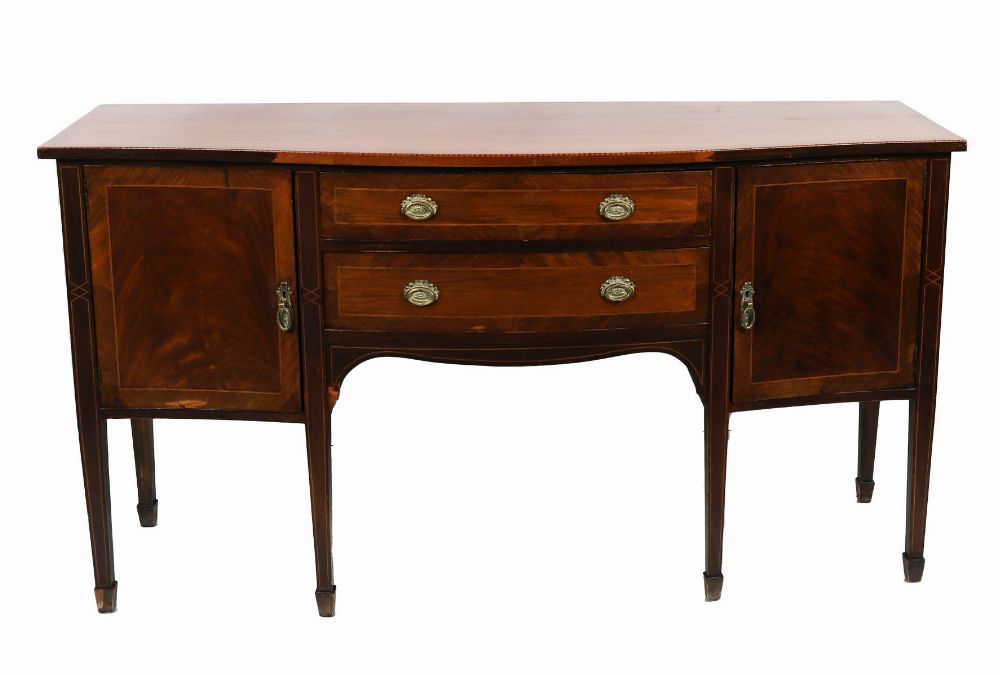 Lot 983 EDWARDIAN MAHOGANY AND CHECKERED INLAID SIDEBOARD