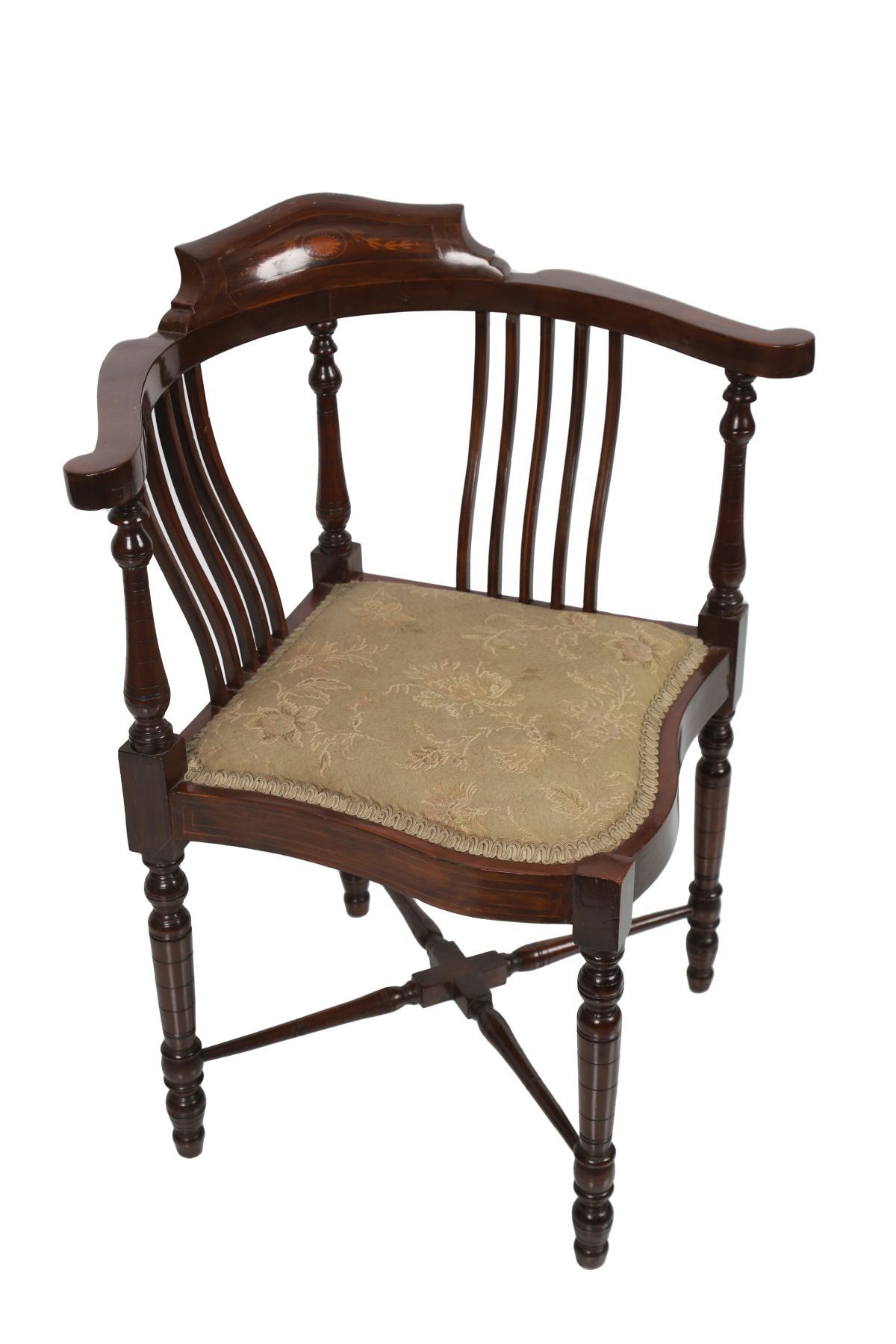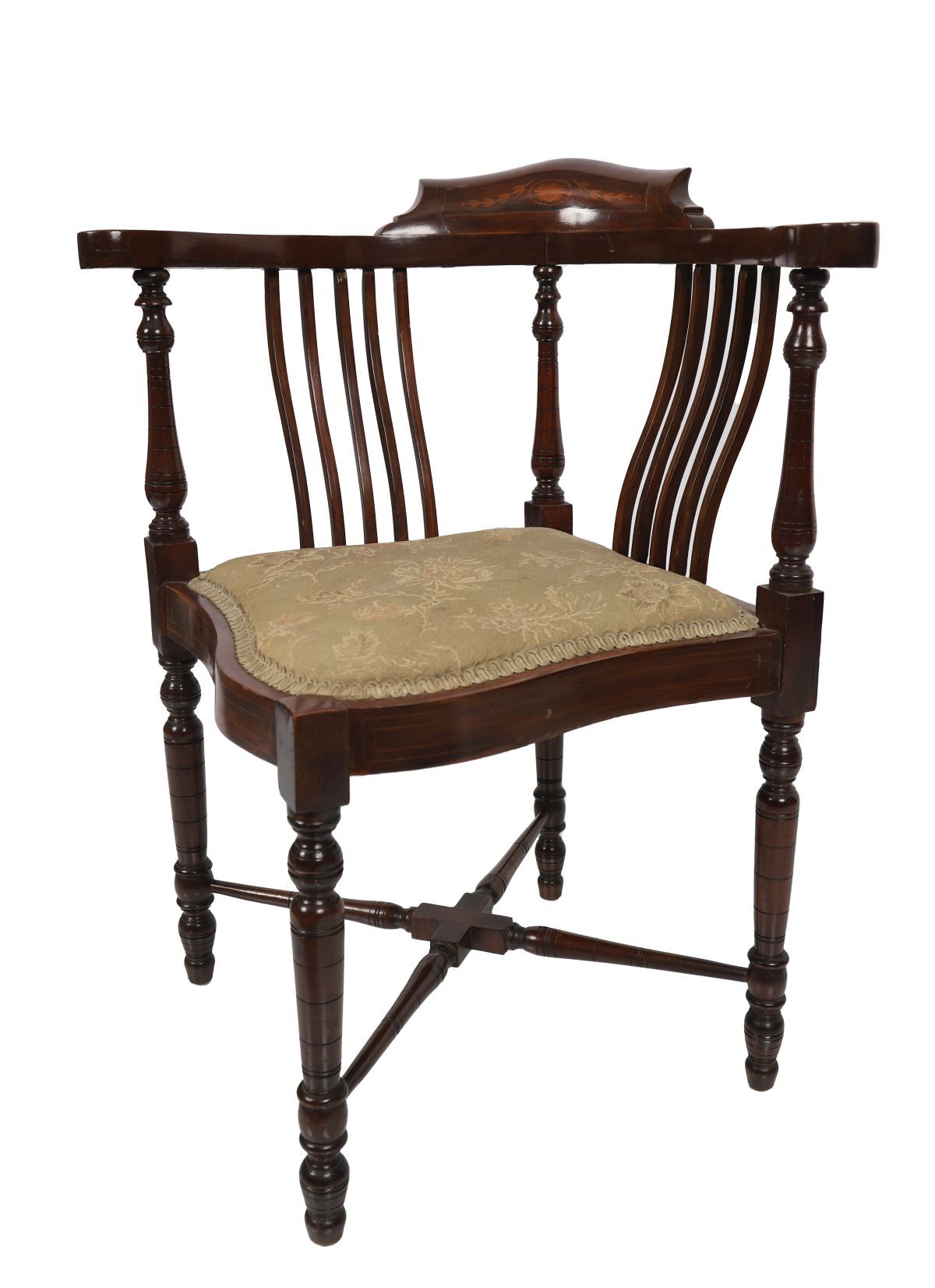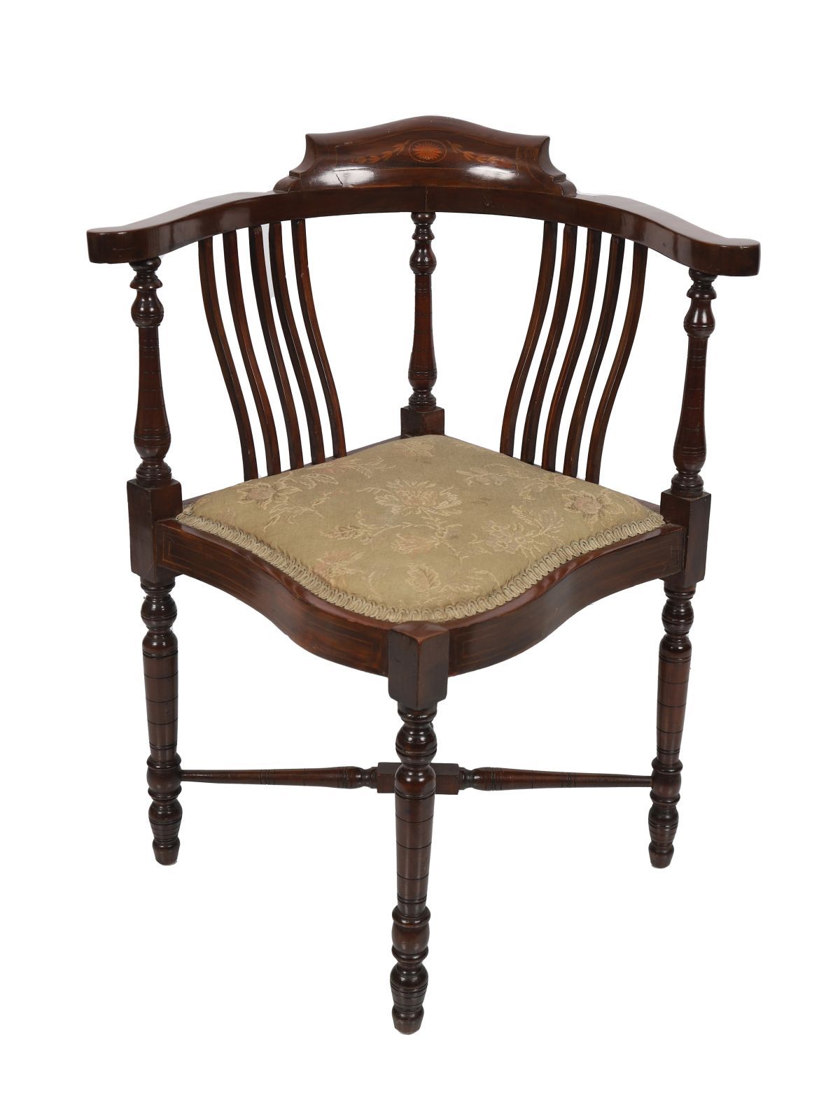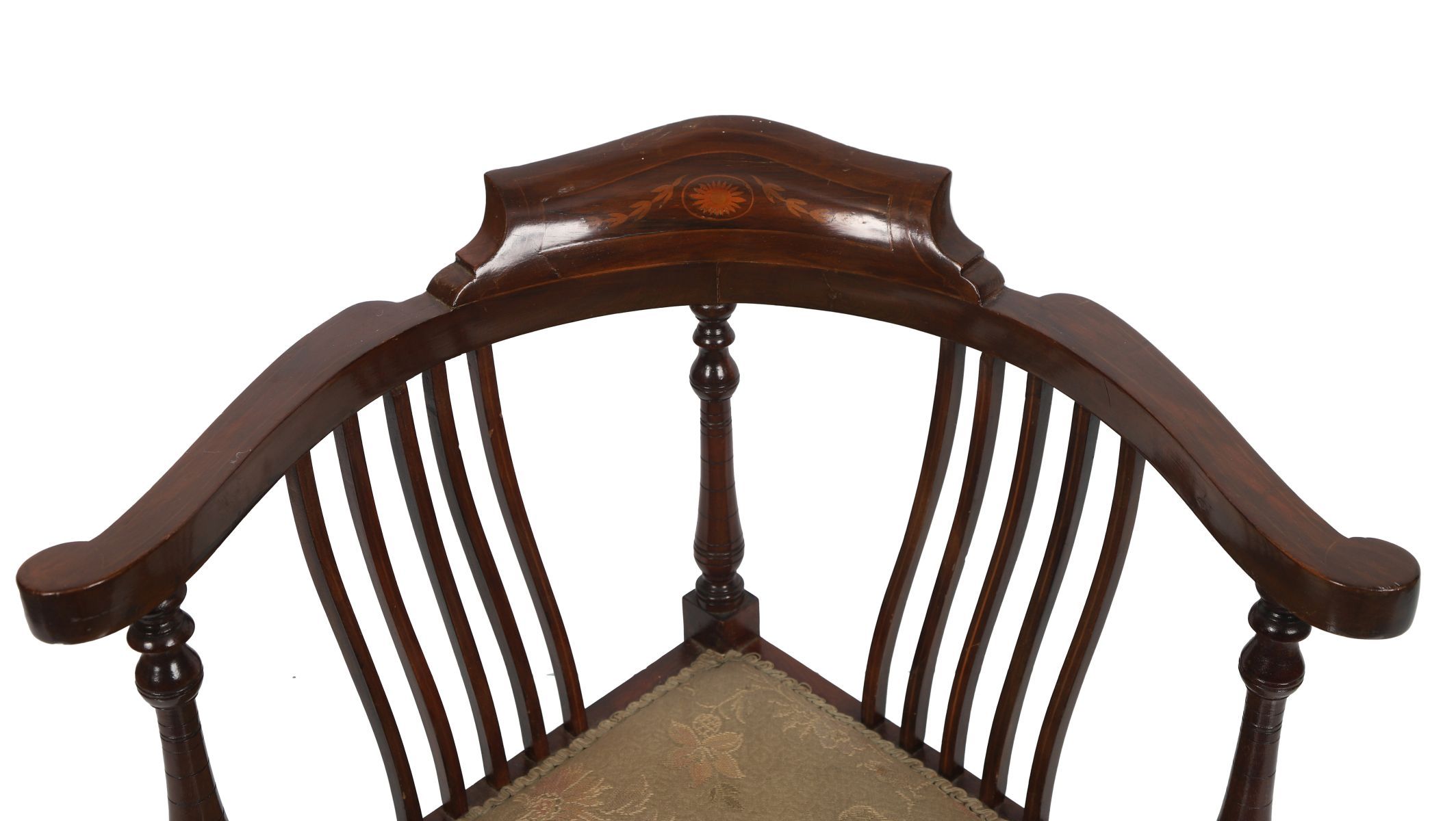 Lot 527 EDWARDIAN MAHOGANY AND MARQUETRY CORNER CHAIR