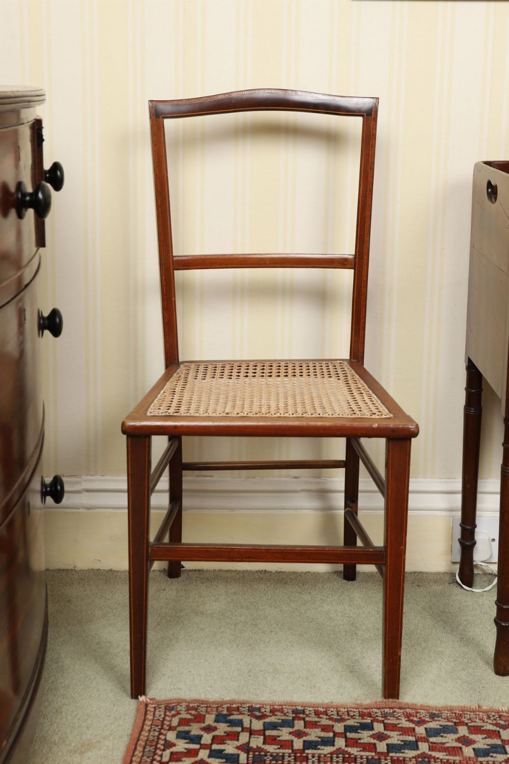 Lot 616 EDWARDIAN MAHOGANY AND SATINWOOD INLAID BEDROOM CHAIR