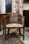 Lot 613 EDWARDIAN MAHOGANY BERGÈRE PANELLED BACK ARMCHAIR