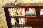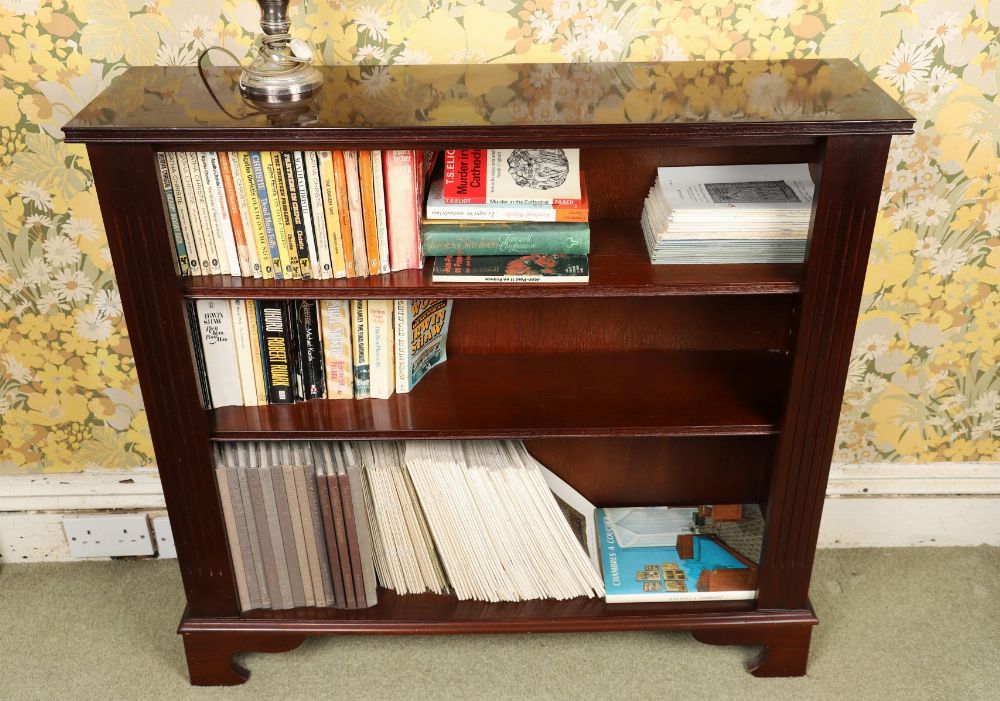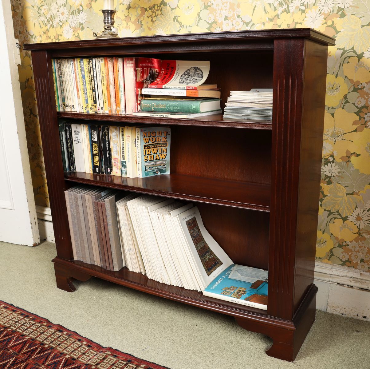 Lot 771 EDWARDIAN MAHOGANY OPEN BOOKCASE