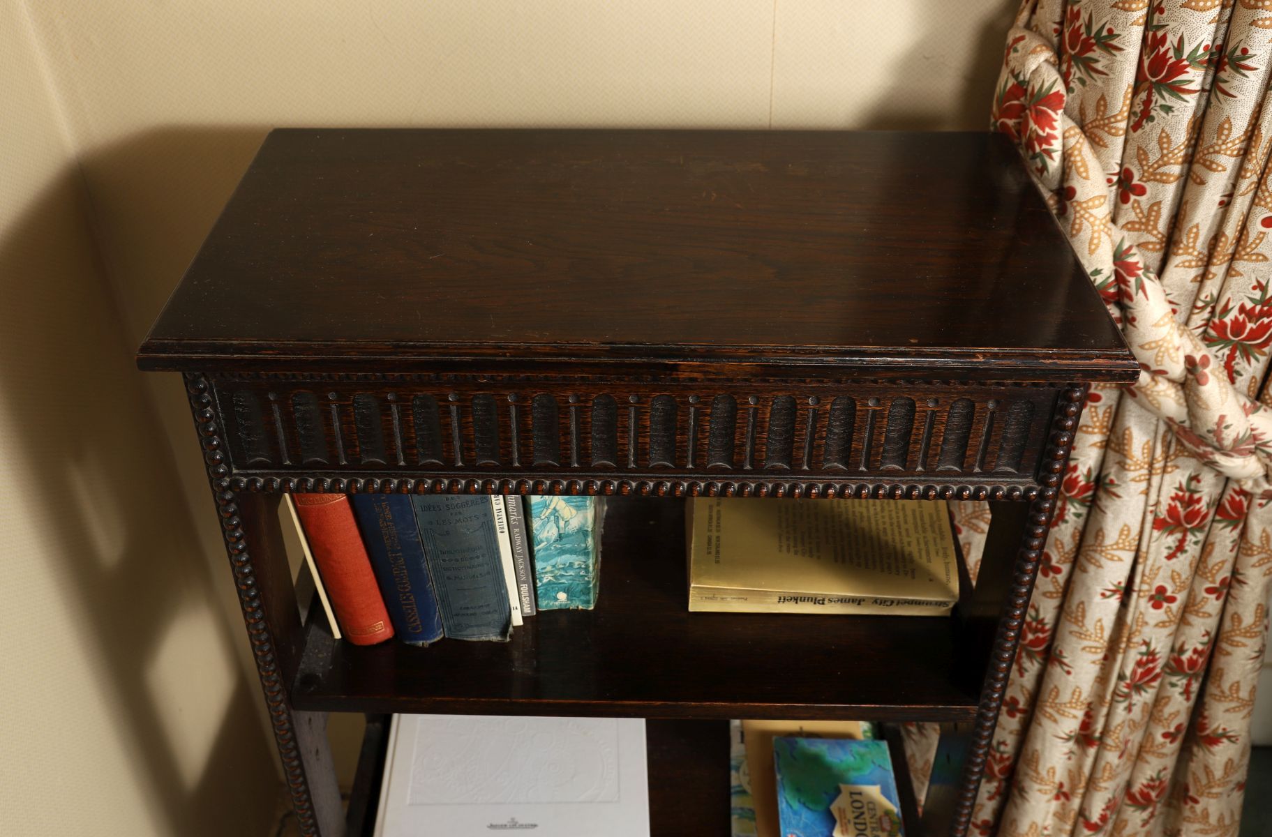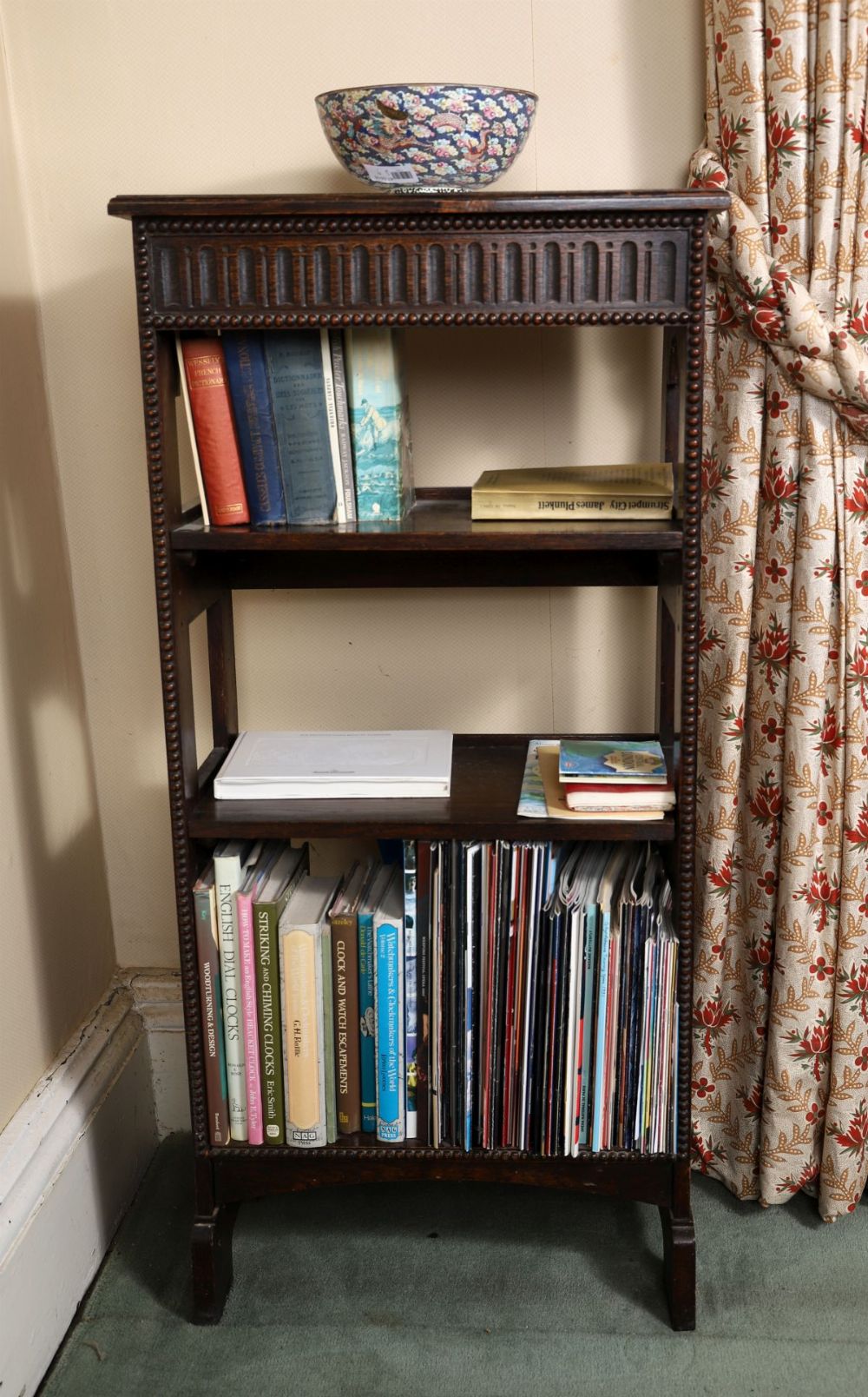 Lot 673 EDWARDIAN OAK OPEN BOOKCASE