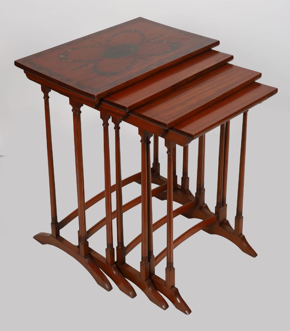 Lot 235 EDWARDIAN SATINWOOD AND PAINTED QUARTETTO TABLES