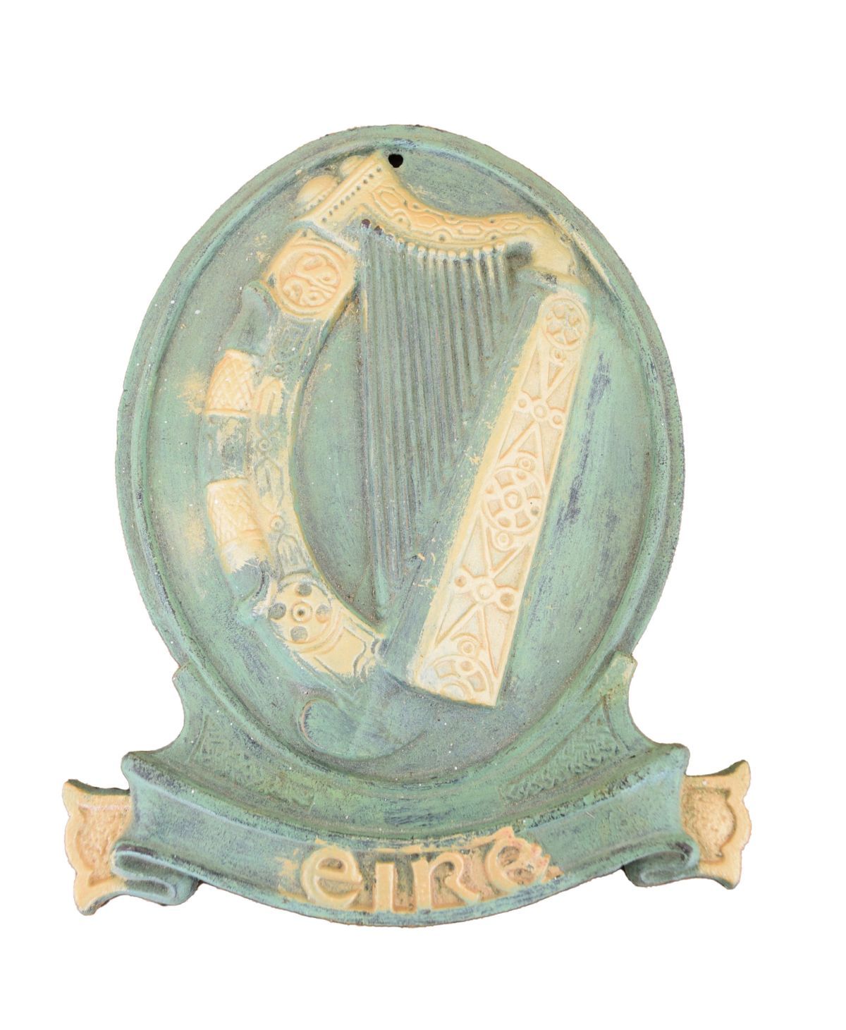 a decorative wall plaque featuring Irish national imagery and the word "Éire".