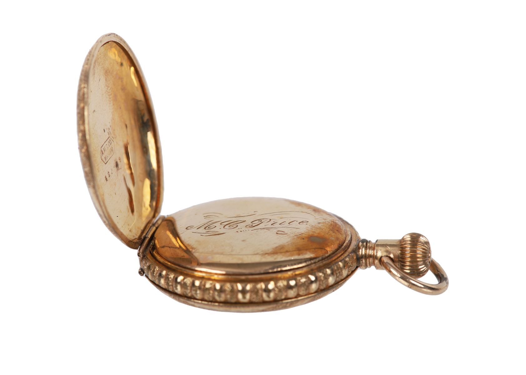 with white enamel dial and Roman numerals. Inscribed on the inside. Serial number available.