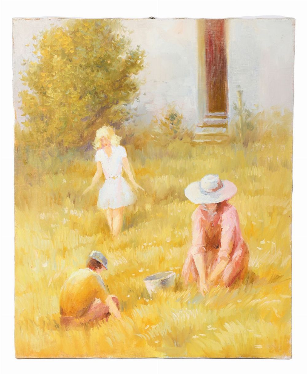 Garden Help. Oil on Canvas. Unsigned. Title Verso. Unframed