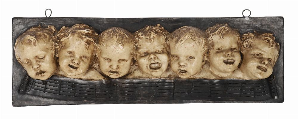Lot 1250 ELONGATED PLASTER WALL PLAQUE DEPICTING CHILDREN'S FACES