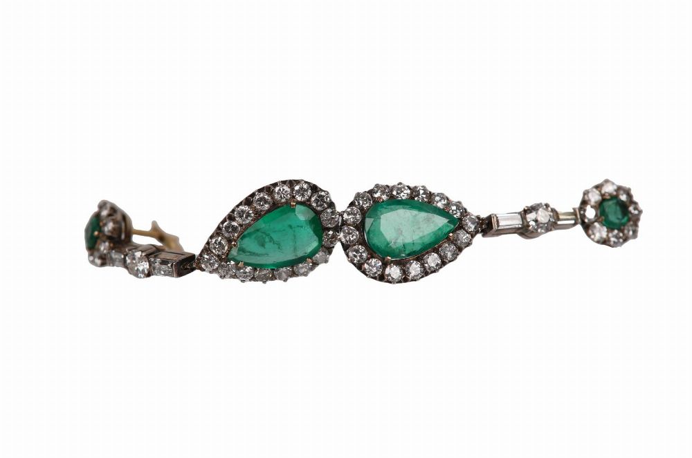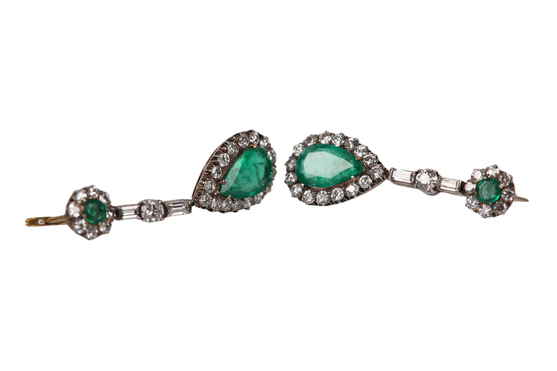 Lot 585 EMERALD AND DIAMOND DROP EARRINGS