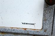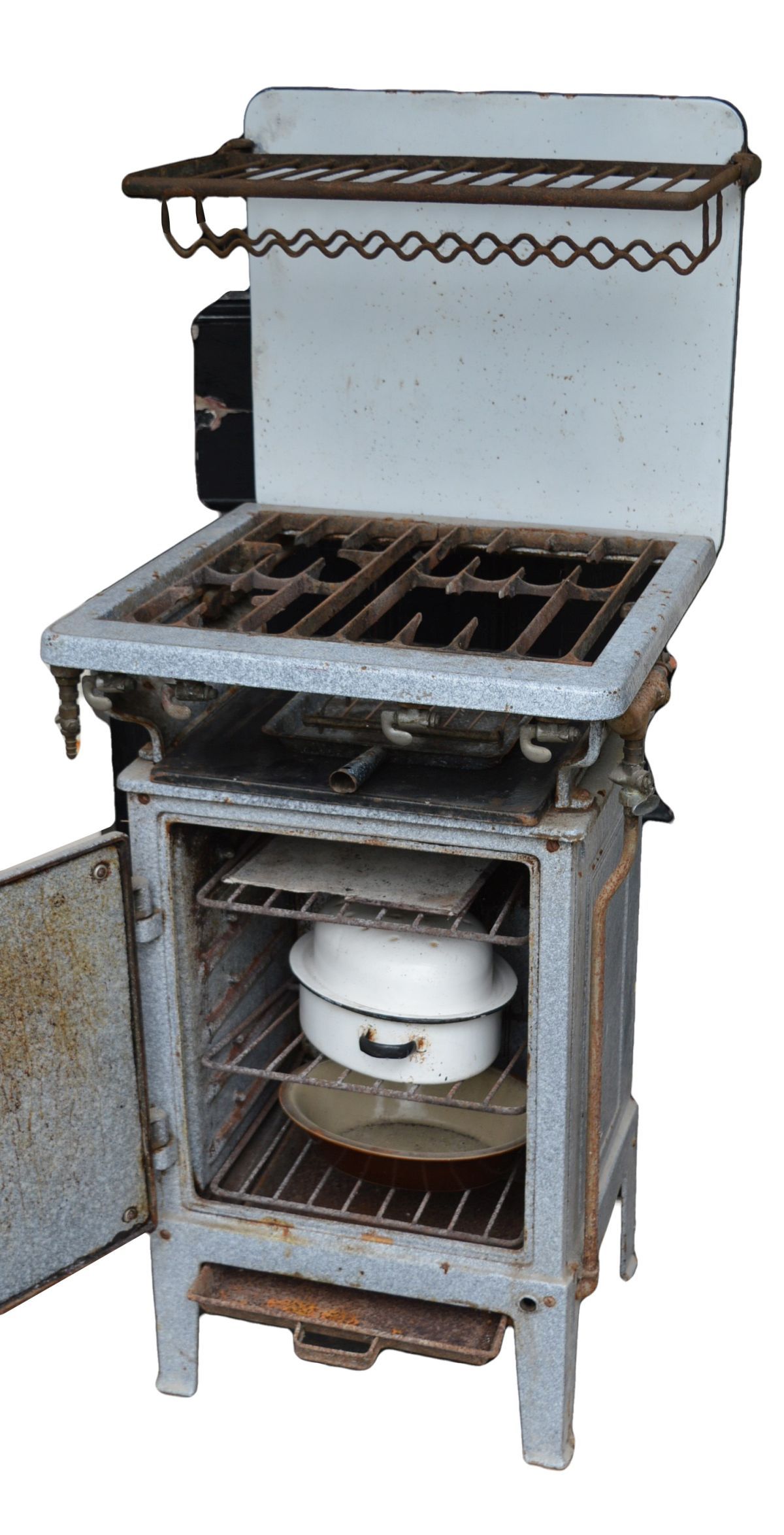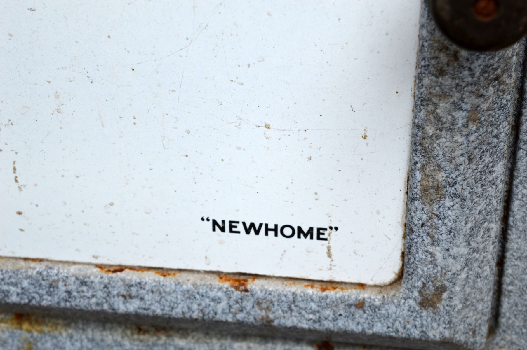 by Newhome; an early 20th-century enamelled cooker unit with hob and oven, designed for domestic kitchen use.
