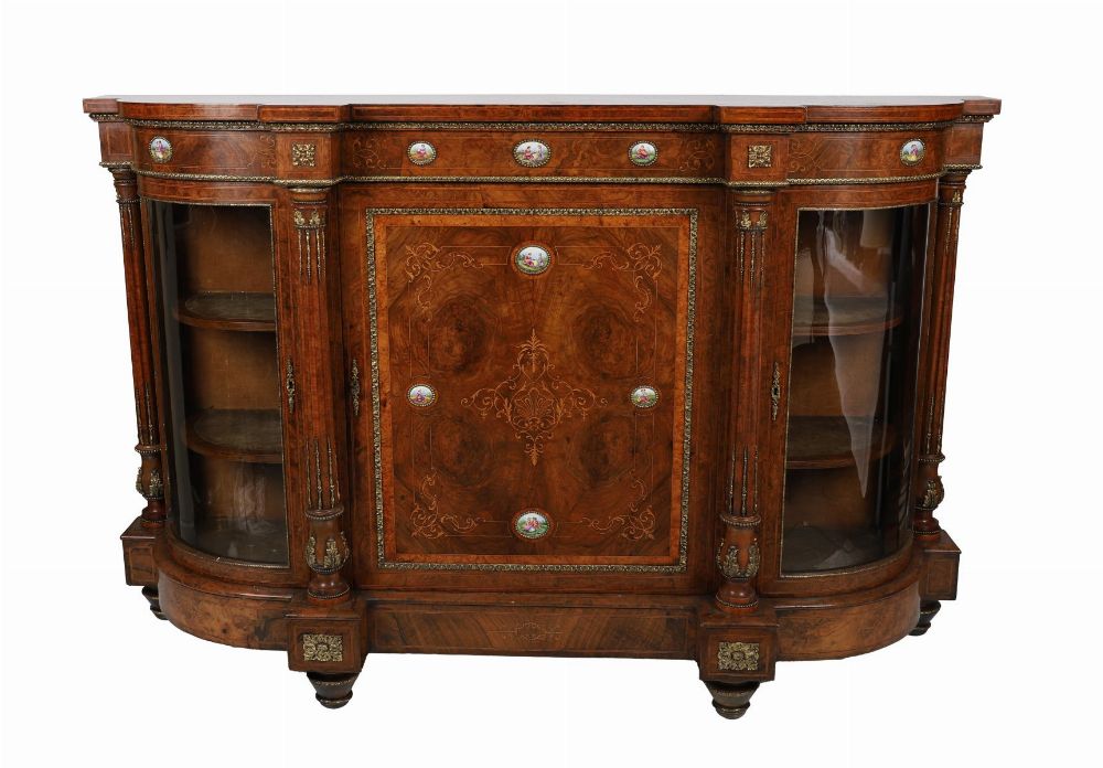 Lot 492 EXCEPTIONAL 19TH-CENTURY ORMOLU-MOUNTED WALNUT MARQUETRY AND PORCELAIN INSET CREDENZA