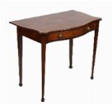 Lot 254 EXCEPTIONAL SHERATON GEORGE III MAHOGANY AND SATINWOOD SERPENTINE SIDE TABLE