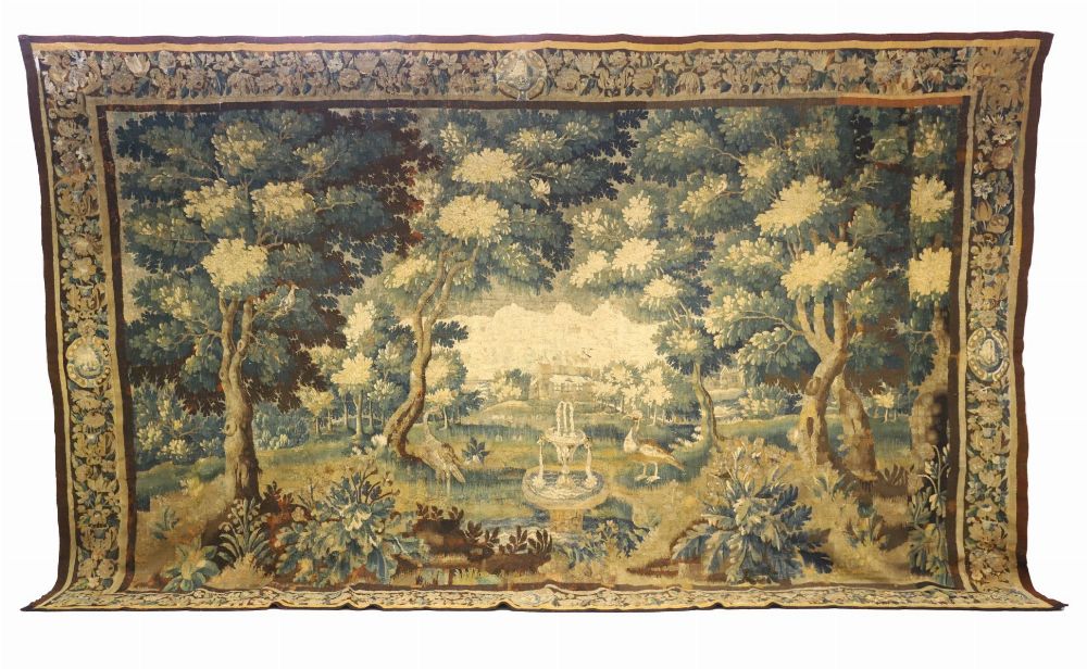 Lot 1406 EXTREMELY LARGE 17TH-CENTURY VERDURE TAPESTRY, SILK AND WOOL