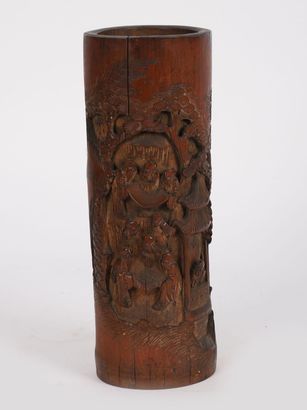 Lot 1265 FINELY CARVED CHINESE QING DYNASTY BAMBOO BRUSHPOT