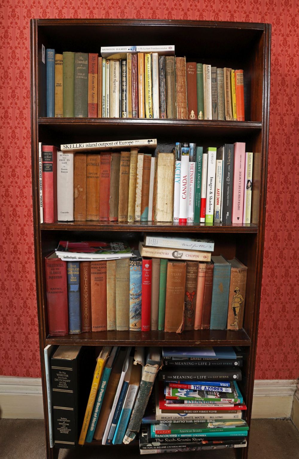 Four shelves of assorted books.