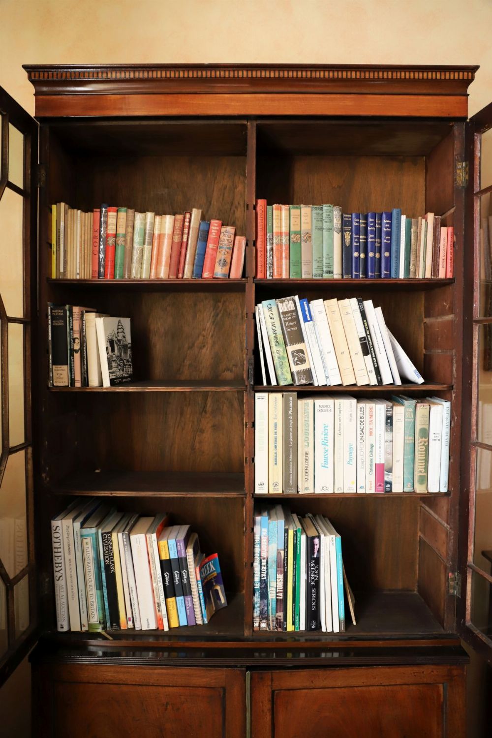 A mixed collection of hardback and paperback volumes, including literature, travel, and reference.