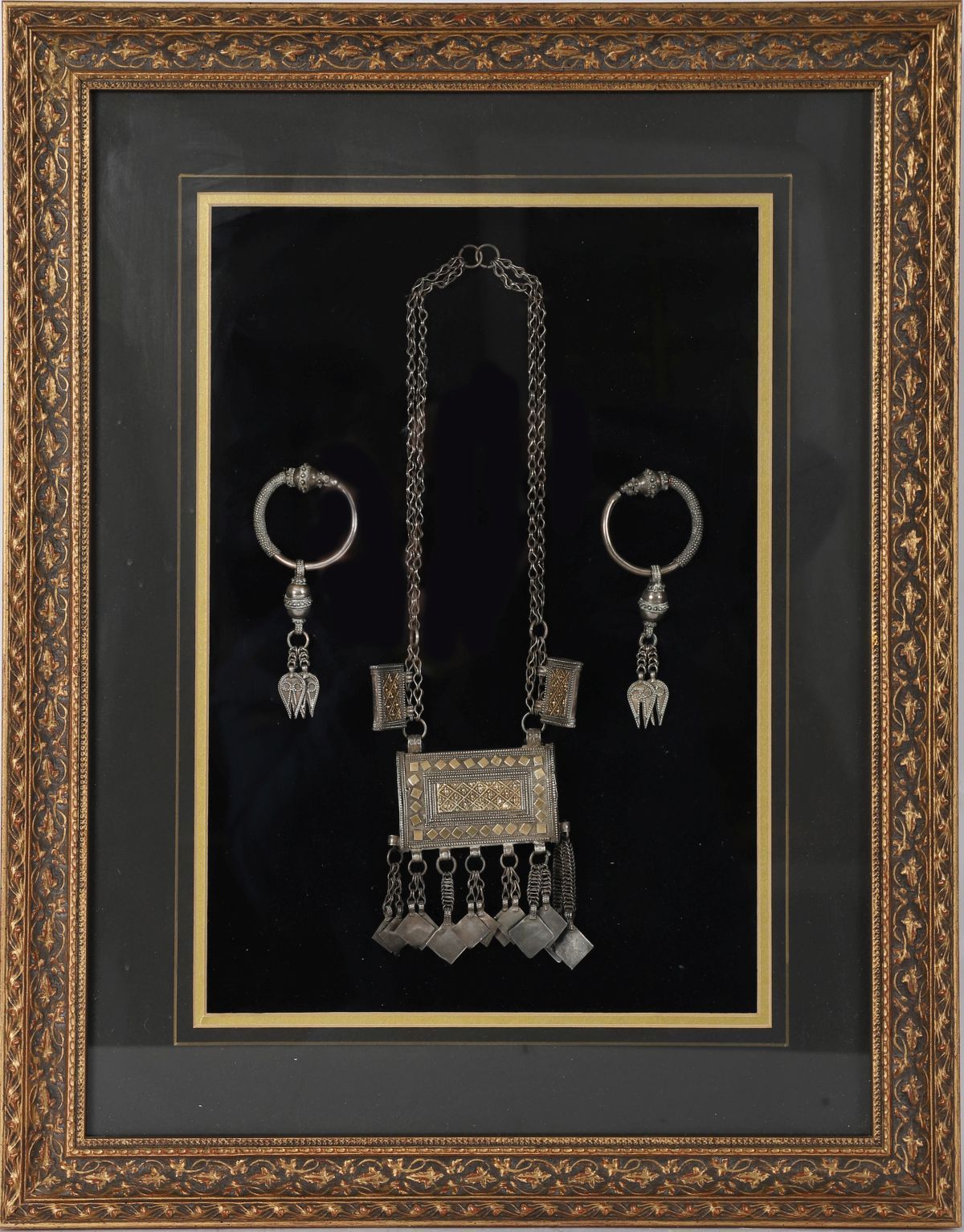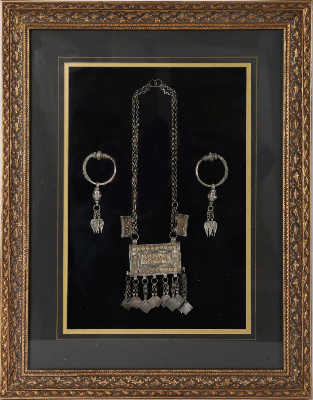 Lot 646 FRAMED SILVER BEDOUIN NECKLACE AND EARRINGS SET