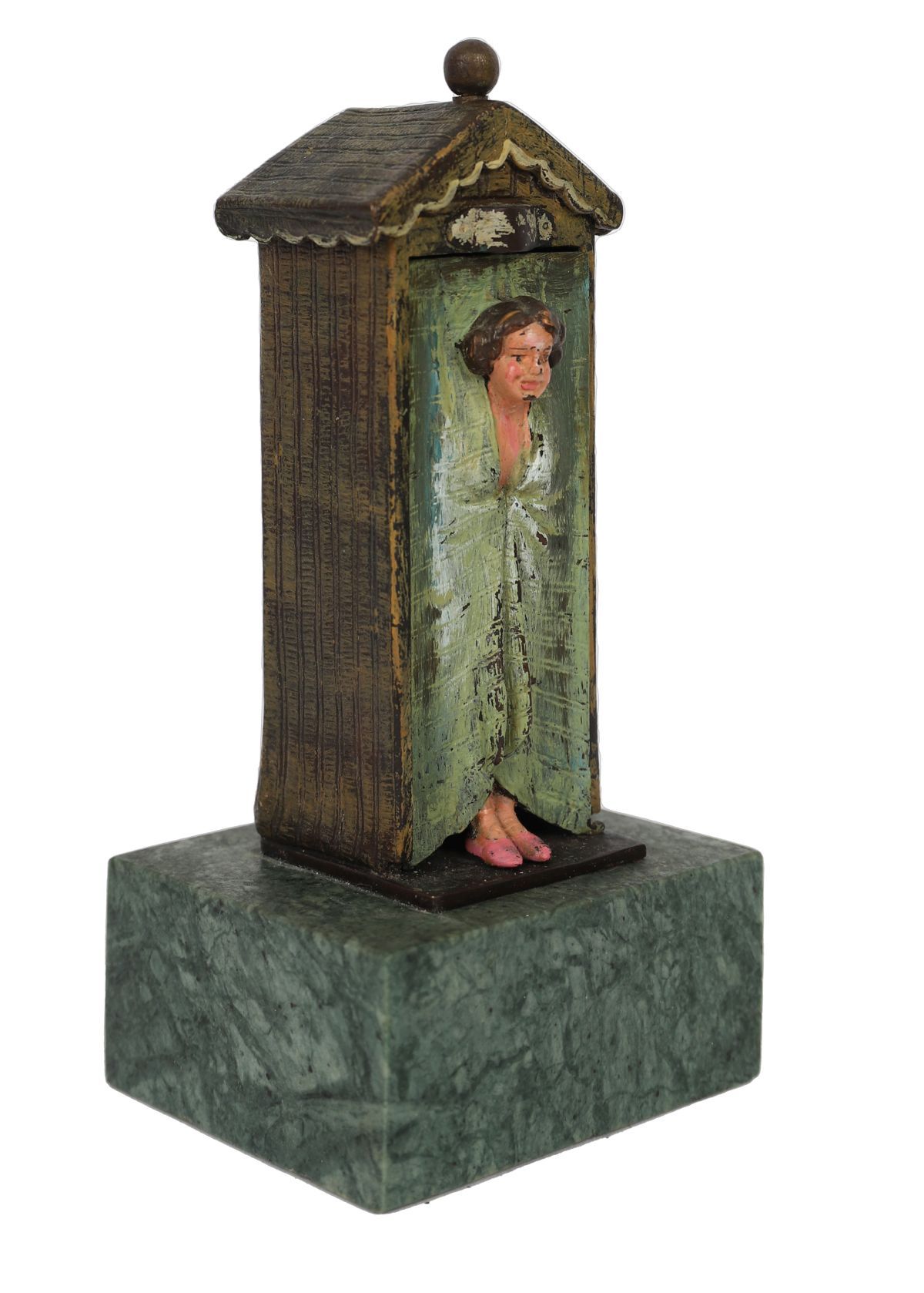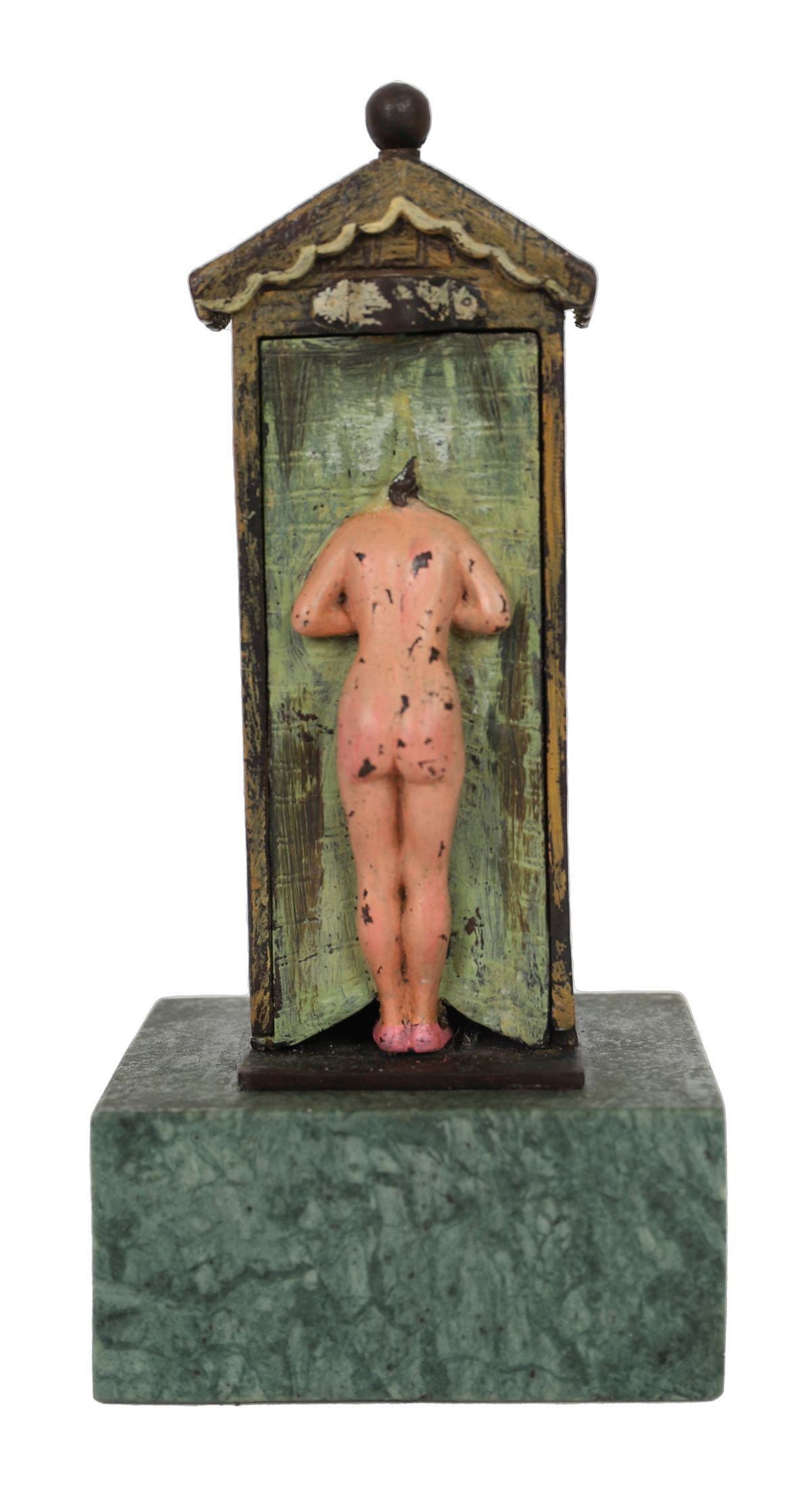Nude at bathing hut, raised on a marble base.
