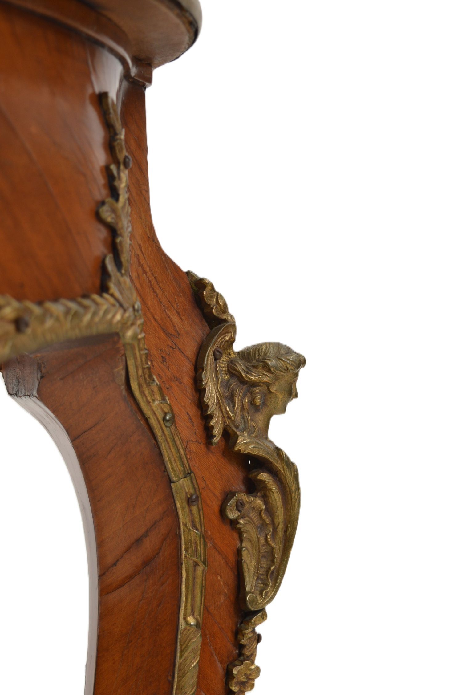 A fine French kingwood bureau plat, 19th century, serpentine outline with gilt tooled leather top, ormolu mounts to the frieze and cabriole legs, with scrolled sabots and rocaille ornament.