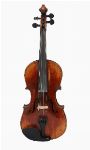 Full-size violin bearing a printed internal Breton label. The two-piece back of attractively flamed maple, bookmatched, with narrow descending curl; ribs and scroll conforming. The table of medium-grained spruce with ebony fingerboard and modern fittings. Varnished in a warm orange-brown spirit varnish with lightly shaded edges.
