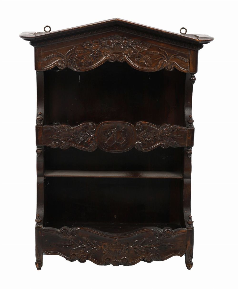 Lot 129 FRENCH PROVINCIAL CARVED WOOD HANGING SHELVES