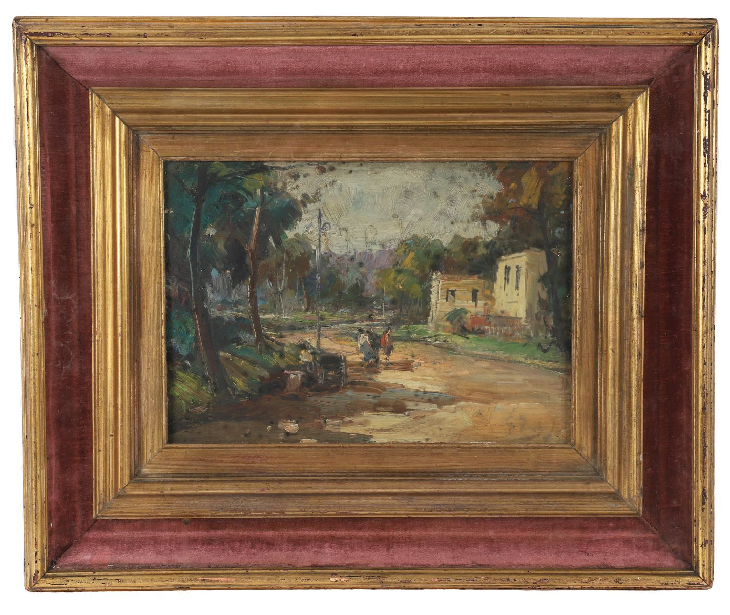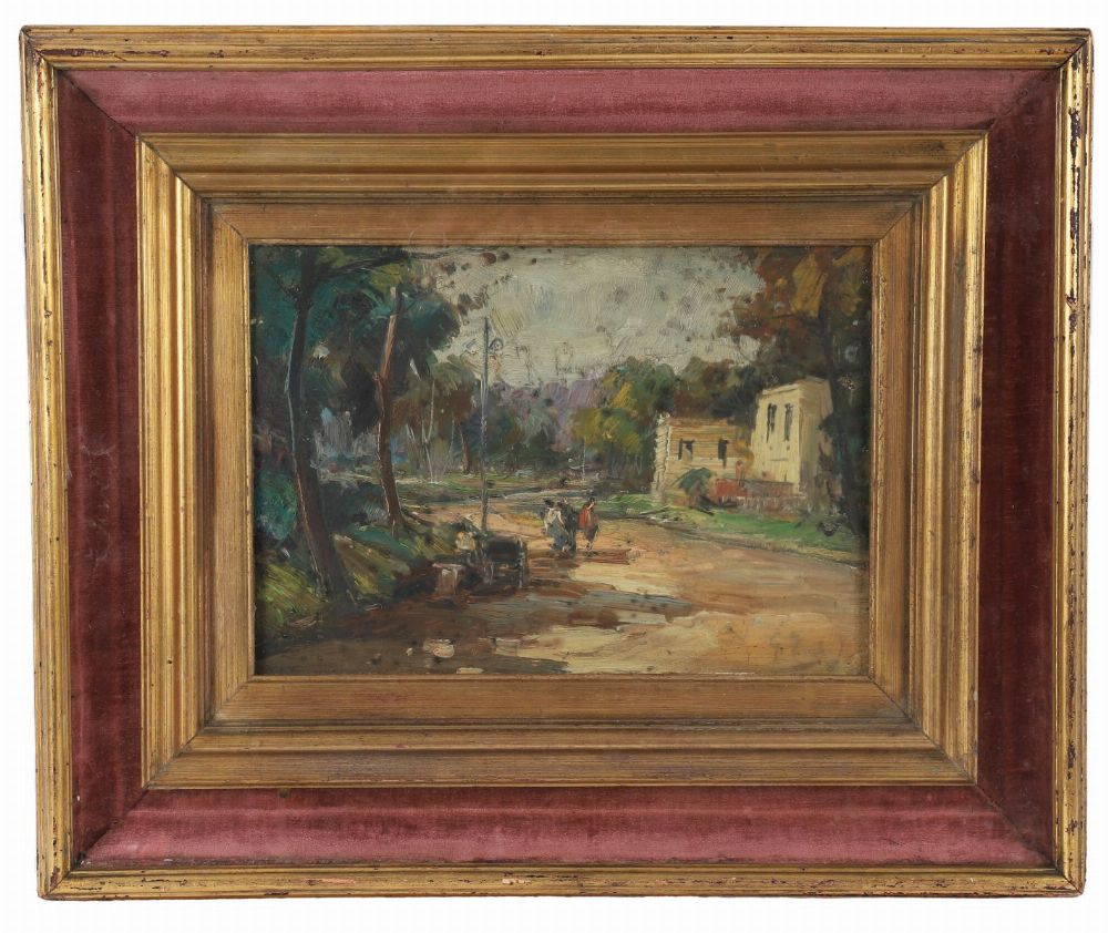 Lot 1412 G FINALE, RURAL STREET SCENE, OIL ON PANEL