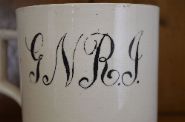 original ceramic railway mug and plate marked G.N.R.I. (Great Northern Railway Ireland), transfer-printed decoration.