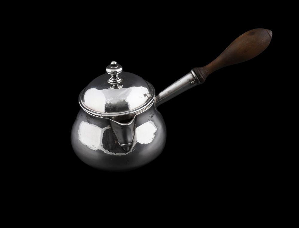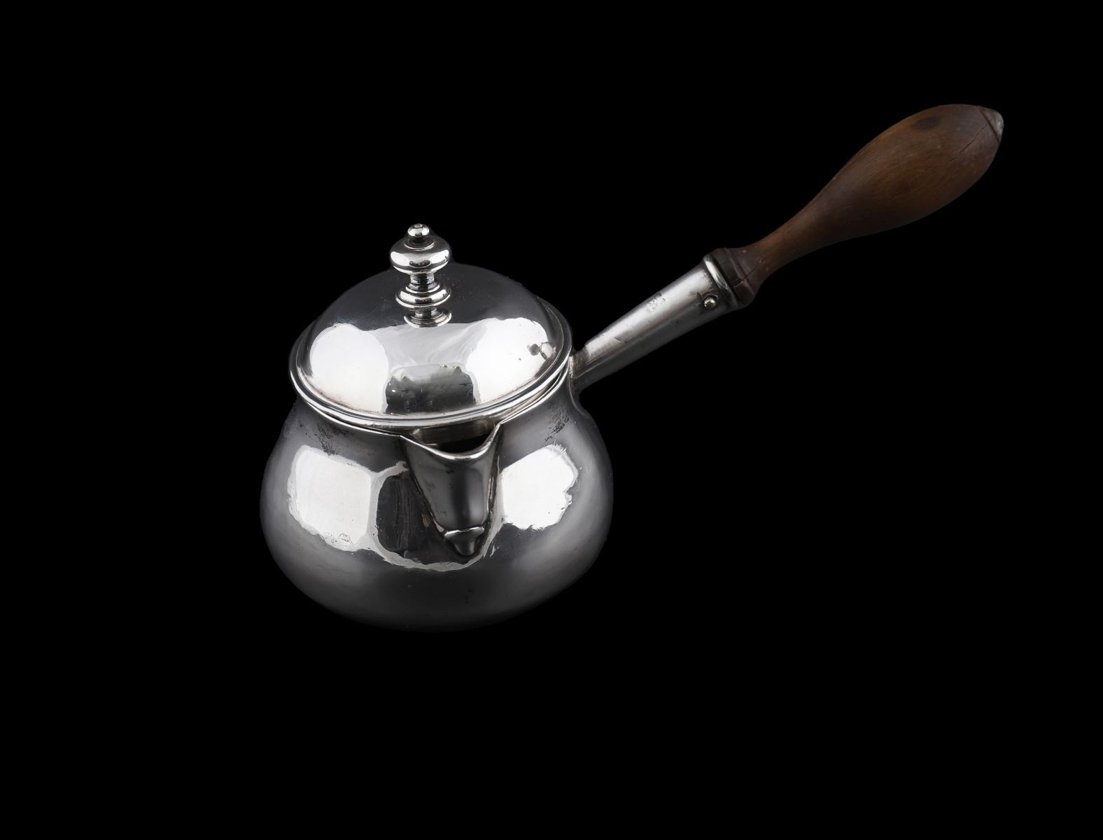 Lot 768 GEORGE I SILVER SMALL BRANDY SAUCEPAN AND COVER