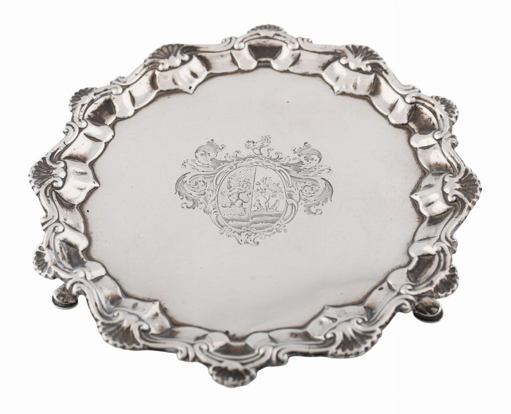 Lot 896 GEORGE II SILVER CIRCULAR WAITER BY RICHARD RUGG, LONDON 1758
