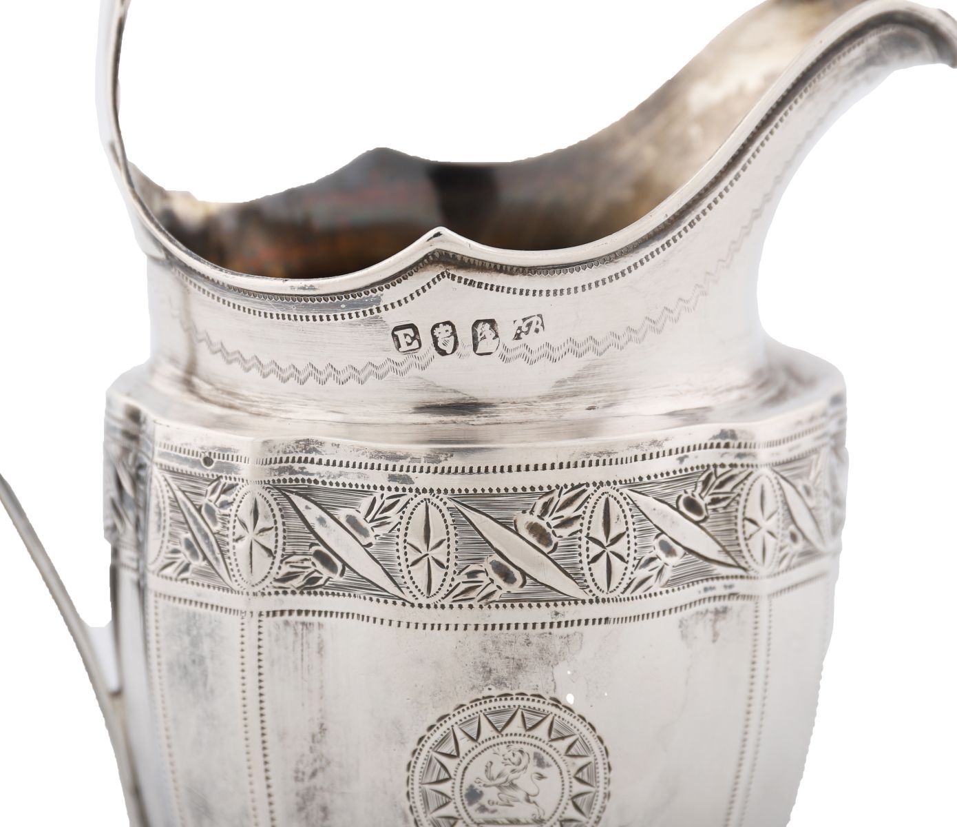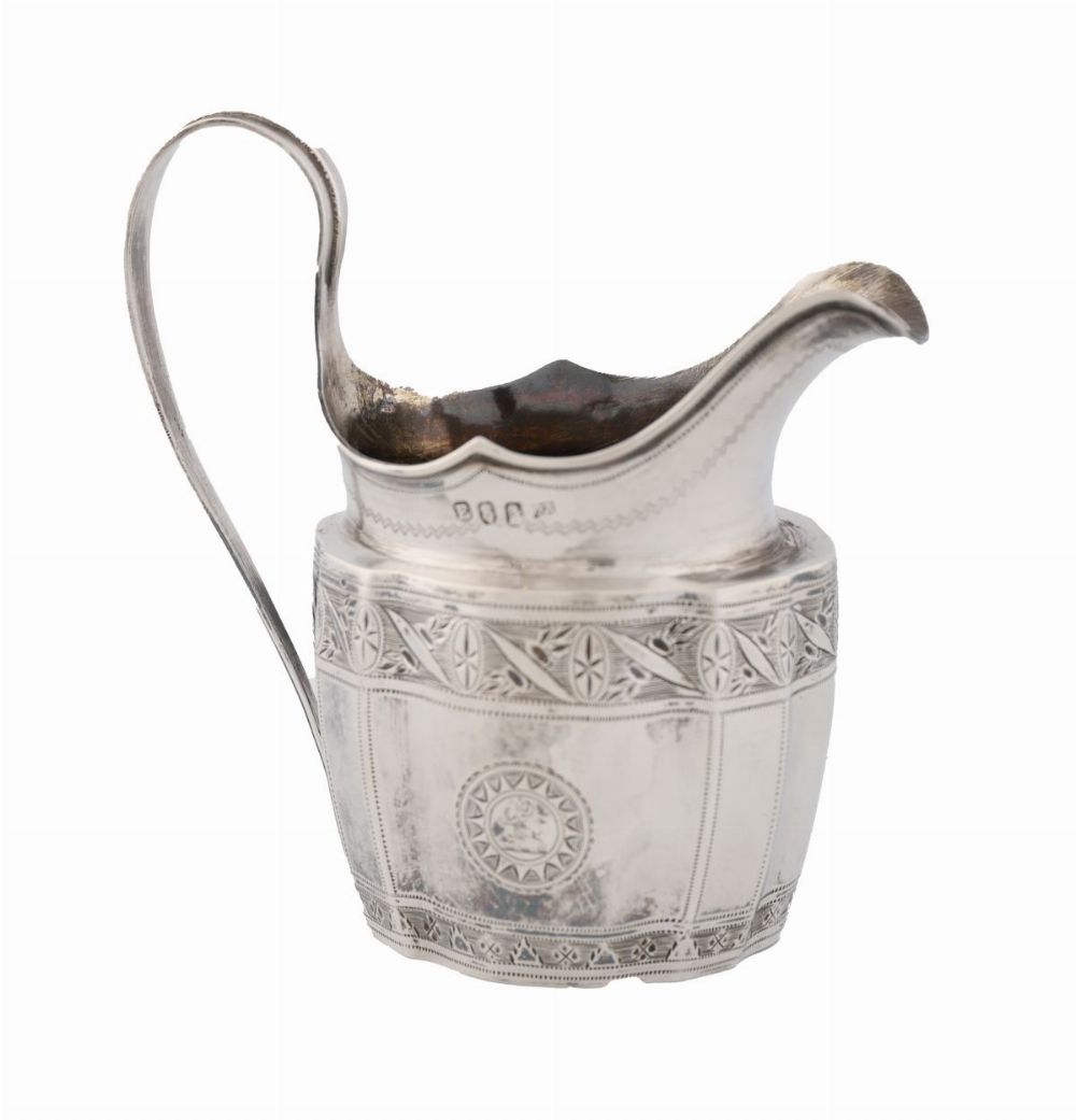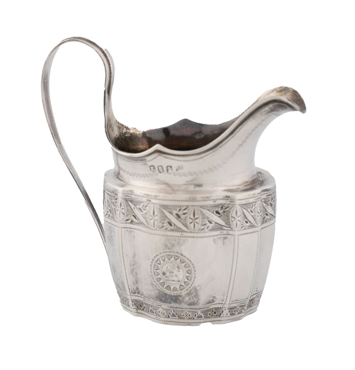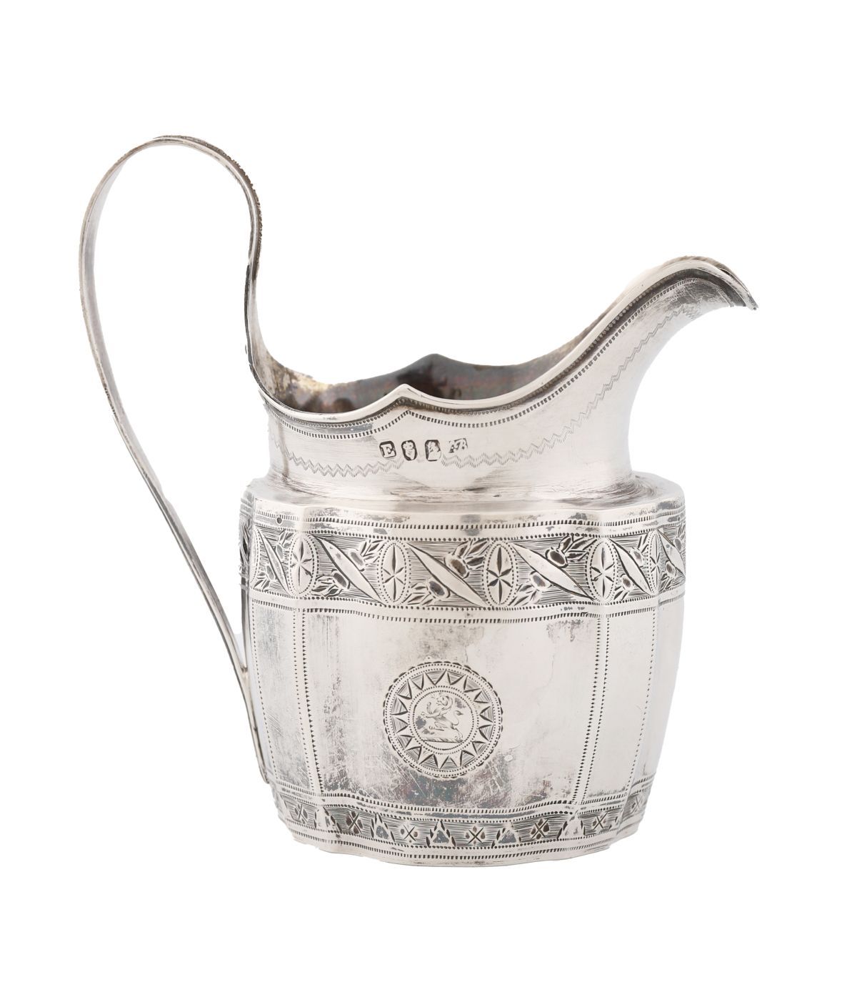 Lot 792 GEORGE III IRISH BRIGHT-ENGRAVED SILVER CREAM JUG