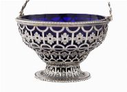 Lot 761 GEORGE III IRISH SWING-HANDLED SILVER SUGAR BASKET