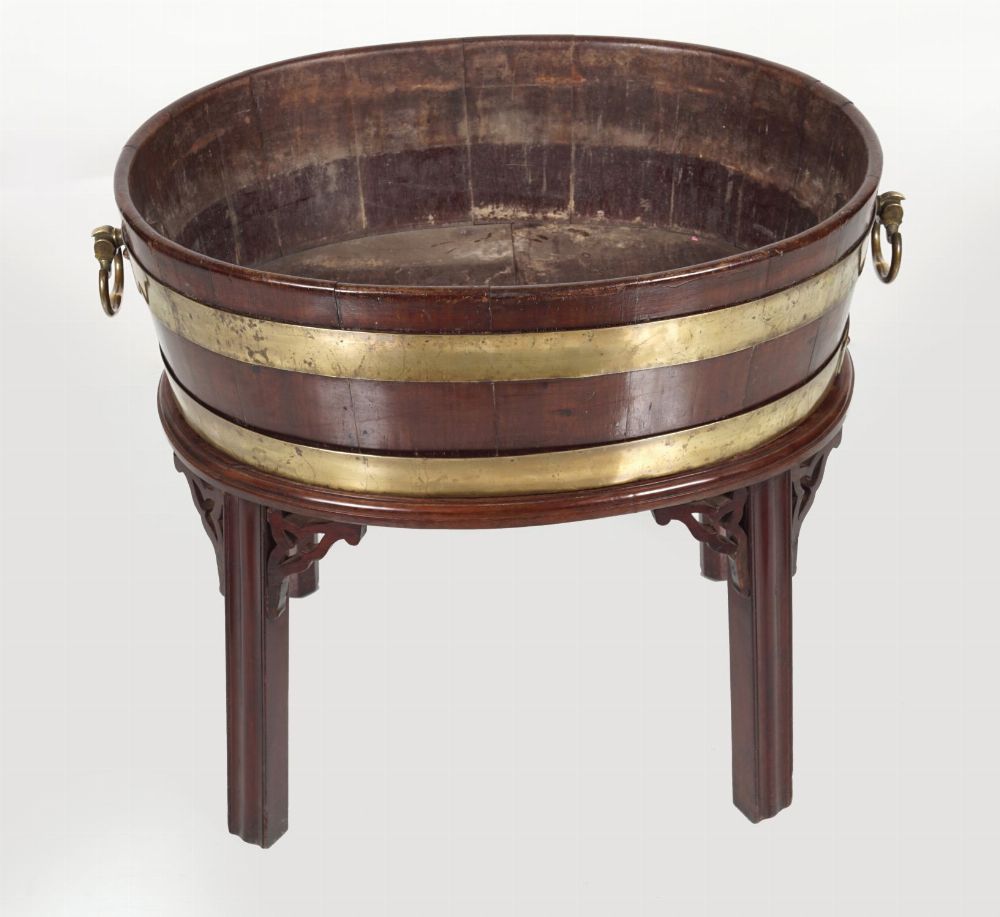Lot 163 GEORGE III MAHOGANY AND BRASS BOUND LOG BARREL