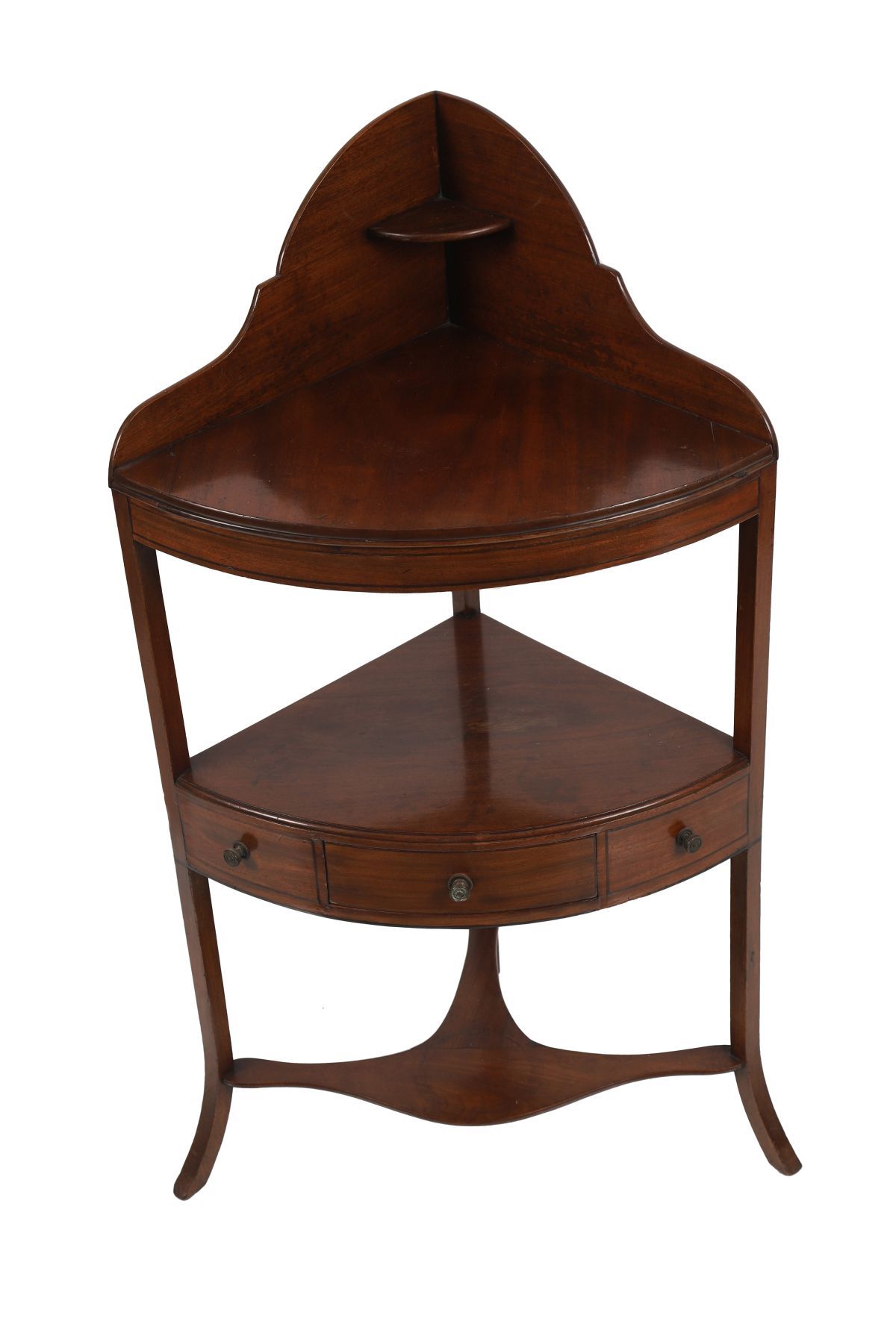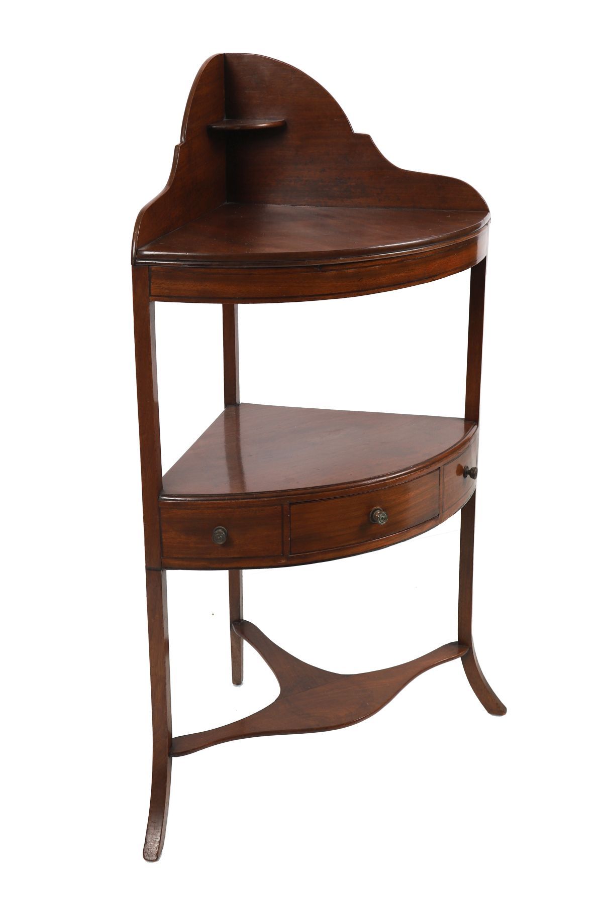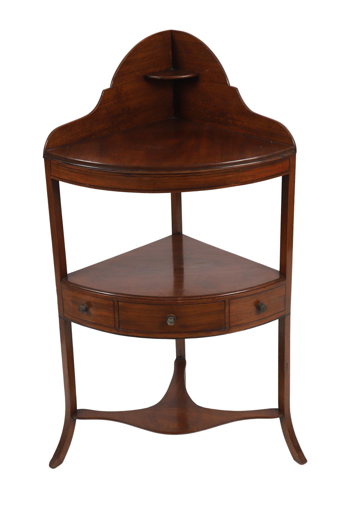 Lot 286 GEORGE III MAHOGANY AND EBONY STRING-INLAID CORNER WASHSTAND