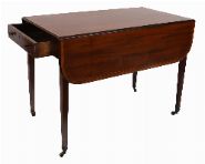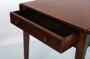 An 18th-century mahogany Pembroke table with opposing real and faux end drawers, satinwood stringing, and square tapering legs.