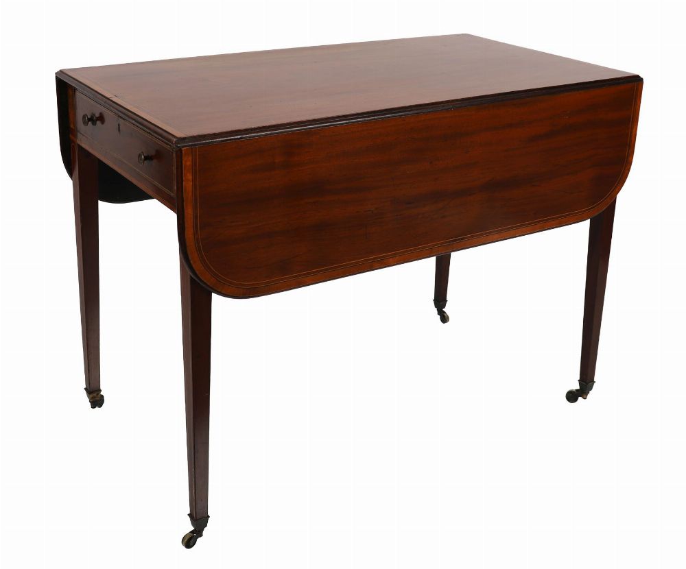 Lot 1547 GEORGE III MAHOGANY AND INLAID PEMBROKE TABLE