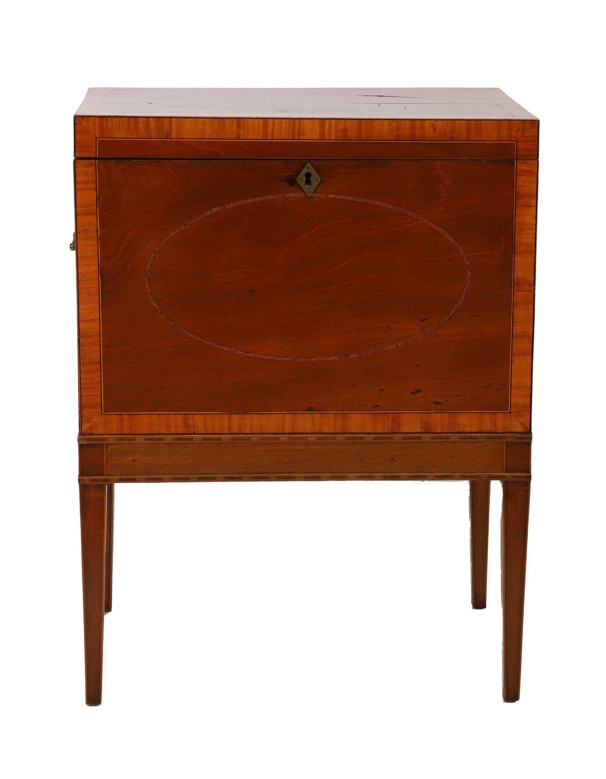 Lot 353 GEORGE III MAHOGANY AND SATINWOOD CROSSBANDED WINE CELLARETTE